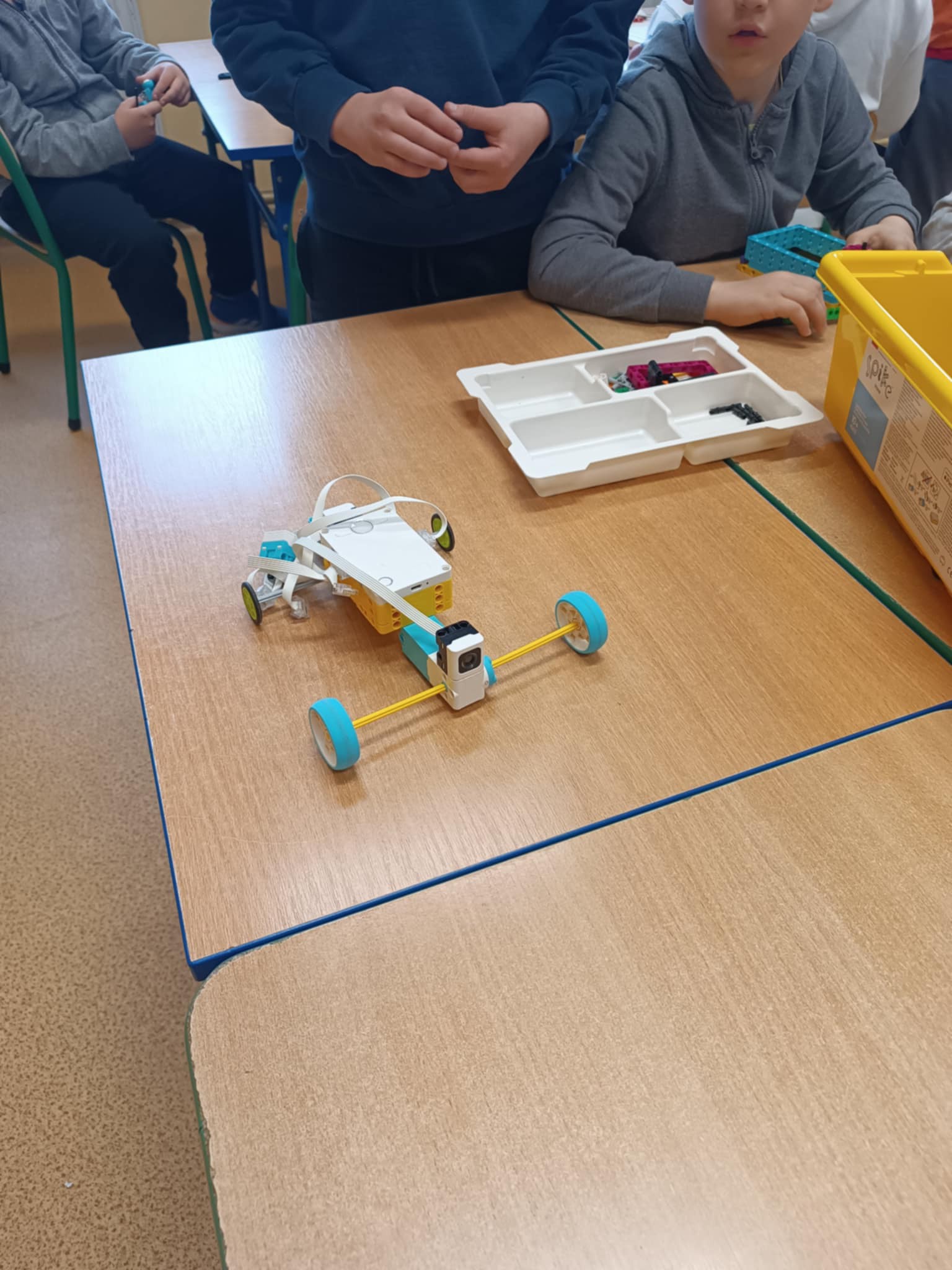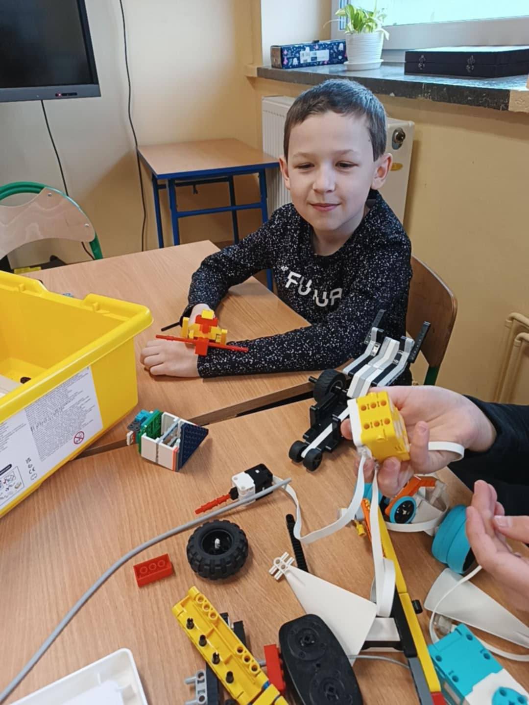 11 kwietnia 2025 roku w ramach realizacji projektu "Laboratoria przyszłości" uczniowie klasy III mieli okazję konstruować z klocków: Lego Education Bricq Motion Prime oraz Lego Education Spike Prime.