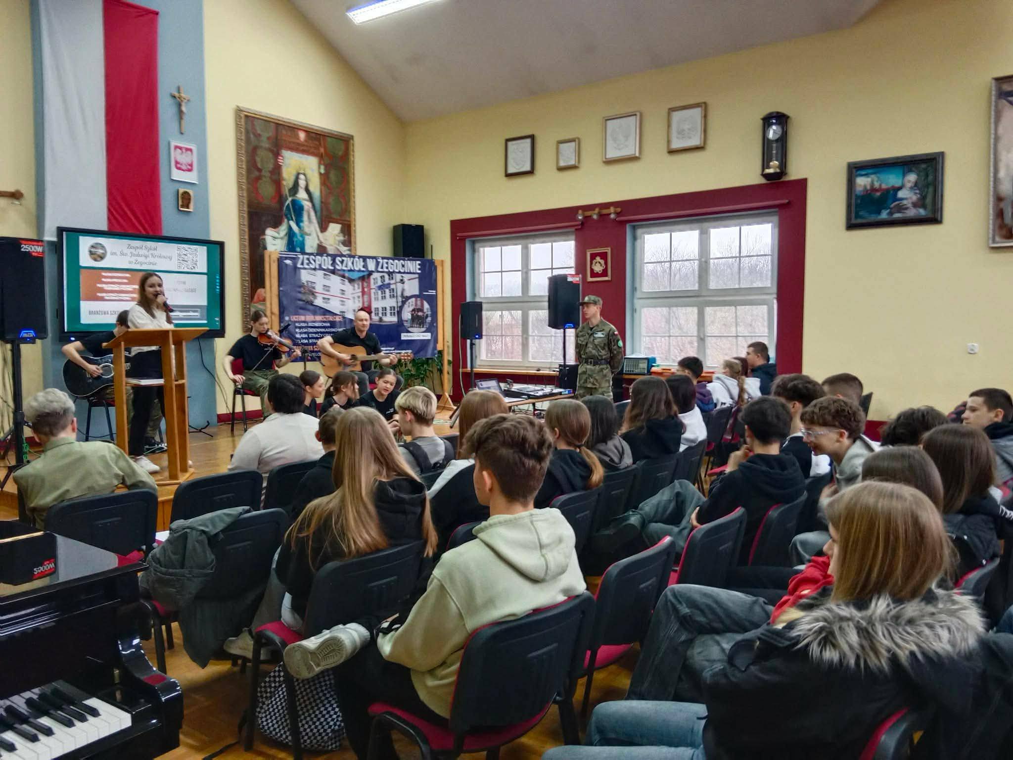 W dniu 26.03.2026 uczniowie klasy VIII wraz z opiekunami Panią Dorotą Grabowską i Panem Wojciechem Machajem uczestniczyli w wyjeździe na dni otwarte do Zespołu Szkół im Świętej Jadwigi Królowej w Żegocinie. Celem wyjazdu było zapoznanie uczniów z ofertą edukacyjną szkoły oraz pomoc w wyborze dalszej ścieżki kształcenia. Podczas wizyty uczniowie mieli mozliwość zwiedzenia placówki, poznania kierunków kształcenia, a takze rozmowy z nauczycielami i uczniami. Zaprezentowano pracownie przedmiotowe, wyposażenie szkoły. Oglądali pokazy uczniów, korzystali z wirtualnej strzelnicy. Wyjazd był cennym doświadczeniem dla uczniów, którzy mogli lepiej poznać swoje zainteresowania i możliwości dalszej nauki. Zdobyte informacje z pewnoscią ułatwią im podjęcie decyzji dotyczacej wyboru szkoły ponadpodstawowej.