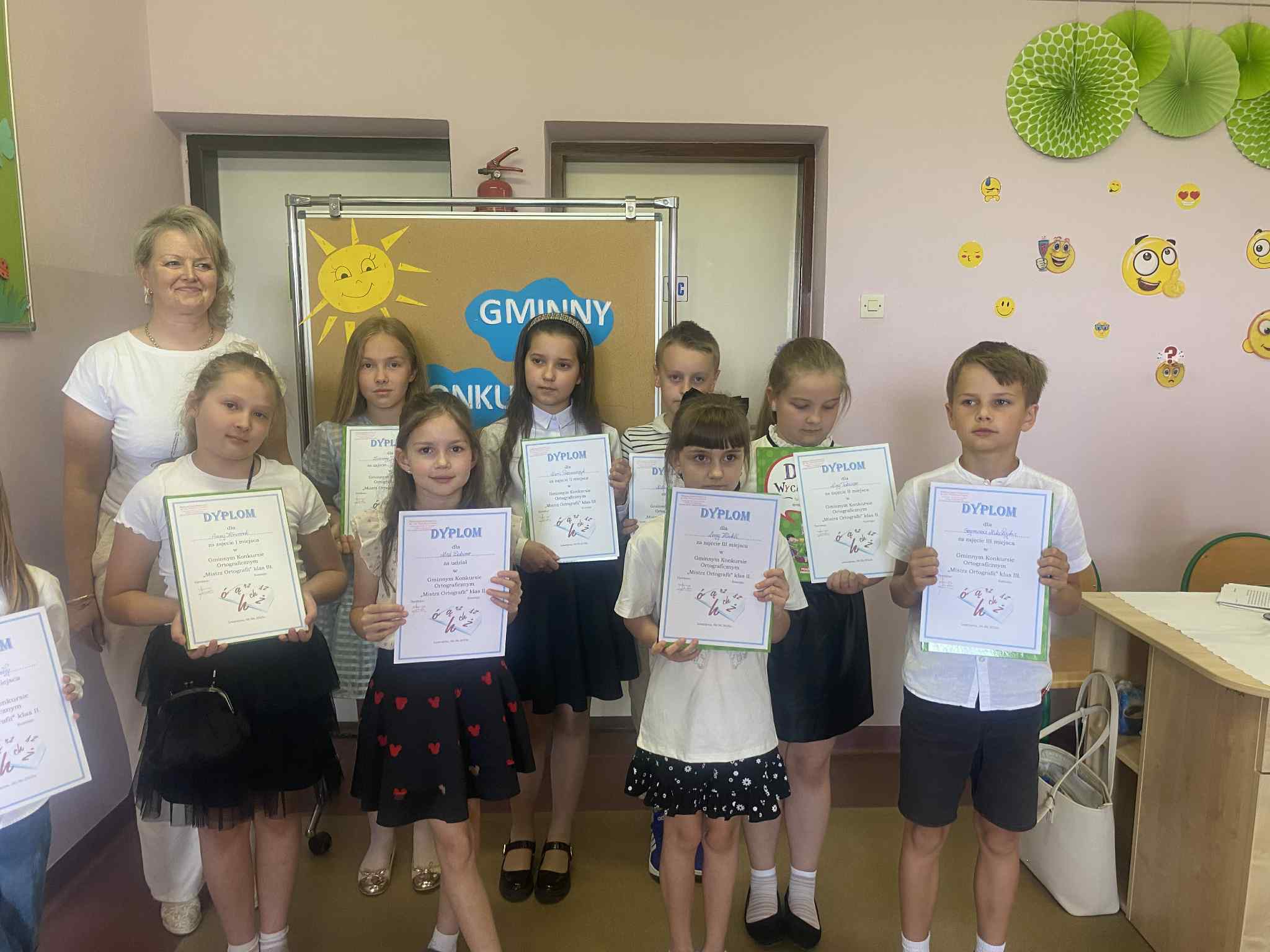 Dnia 6 czerwca w PSP w Leszczynie odbył się Gminny Konkurs Ortograficzny dla klas drugich i trzecich. W konkursie wzięło udział 9 uczniów z wszystkich szkół naszej gminy. PSP w Kierlikówce reprezentowały: Zuzanna Jagielska i Lena Kukla. Miło na poinformować, że Zuzanna Jagielska zajęła 2 miejsce, a Lena Kukla- 3 miejsce. Gratulujemy !!!