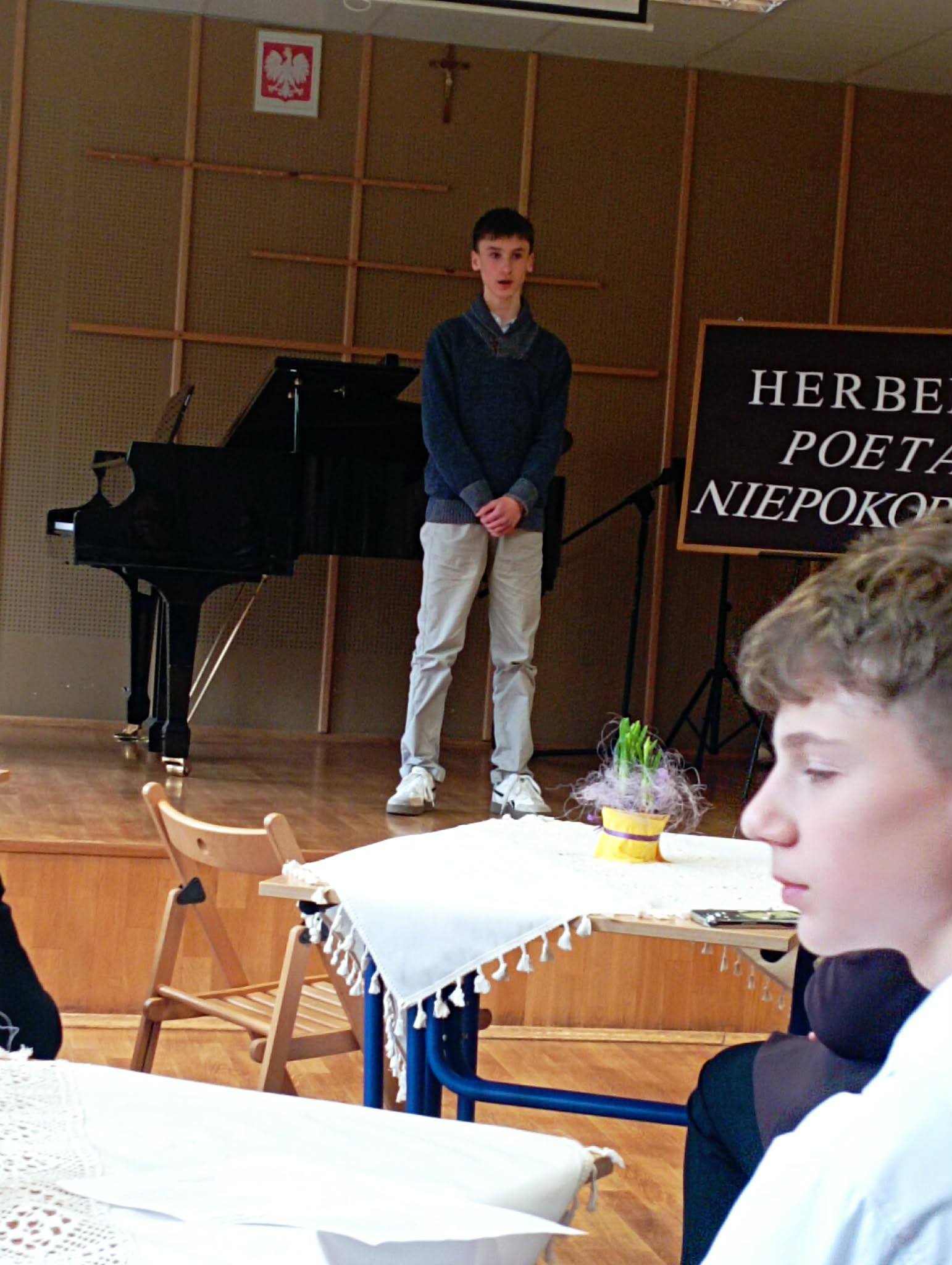 Do konkursu, pod okiem p. Jolanty Jaworskiej przygotowywali się wybrani w szkolnych eliminacjach chętni uczniowie klasy VII i VIII. Udział w wydarzeniu wymagał nie tylko opanowania tekstu na pamięć, ale również odpowiedniej interpretacji i wyrażenia emocji poprzez głos, gest czy mimikę, a także opanowania tremy podczas występu przed publicznością.