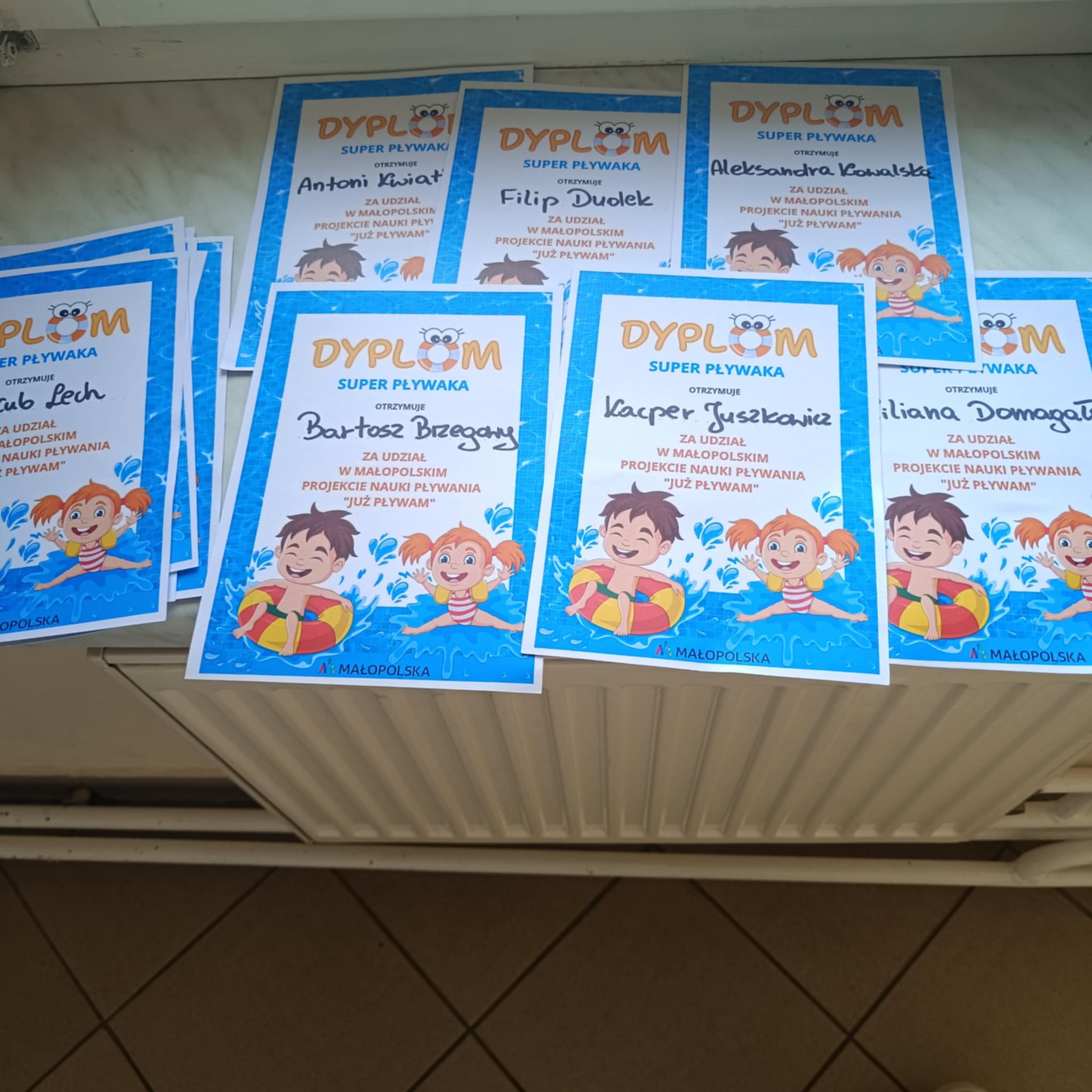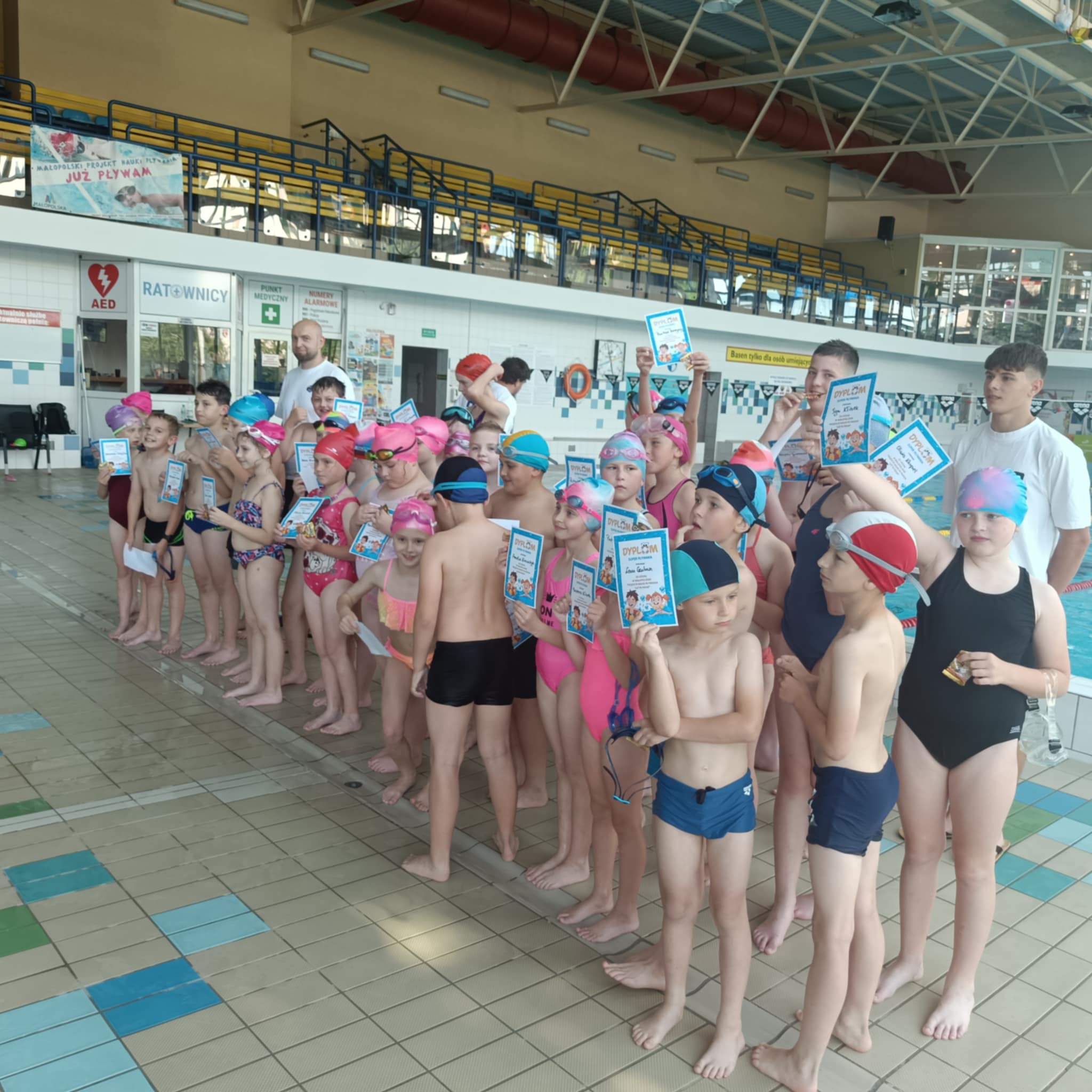 w wodzie, korzystały ze zjeżdżalni a przede wszystkim świetnie się integrowały z rówieśnikami z całej gminy. Podczas ostatniego wyjazdu otrzymali dyplomy i słodki upominek!