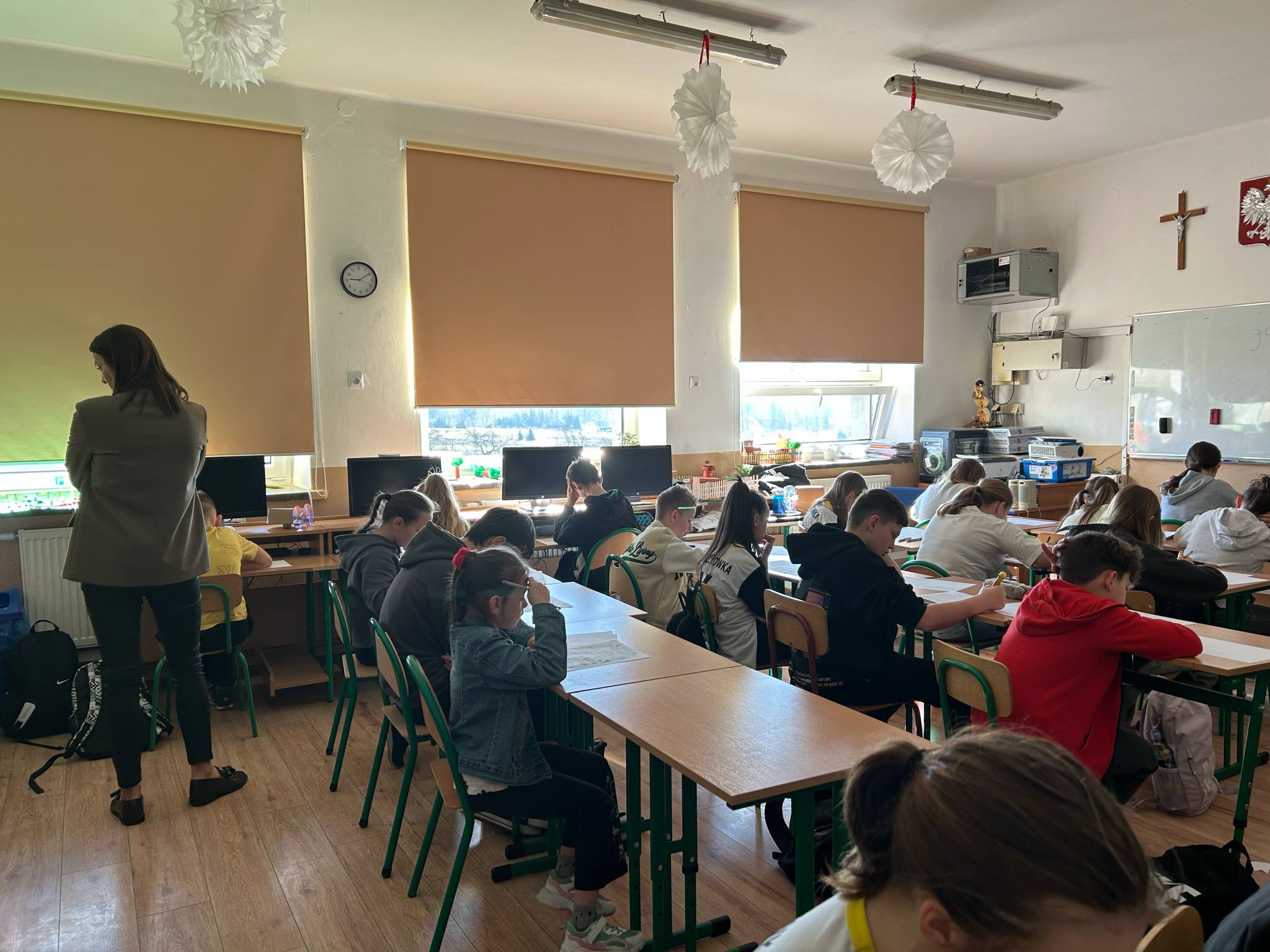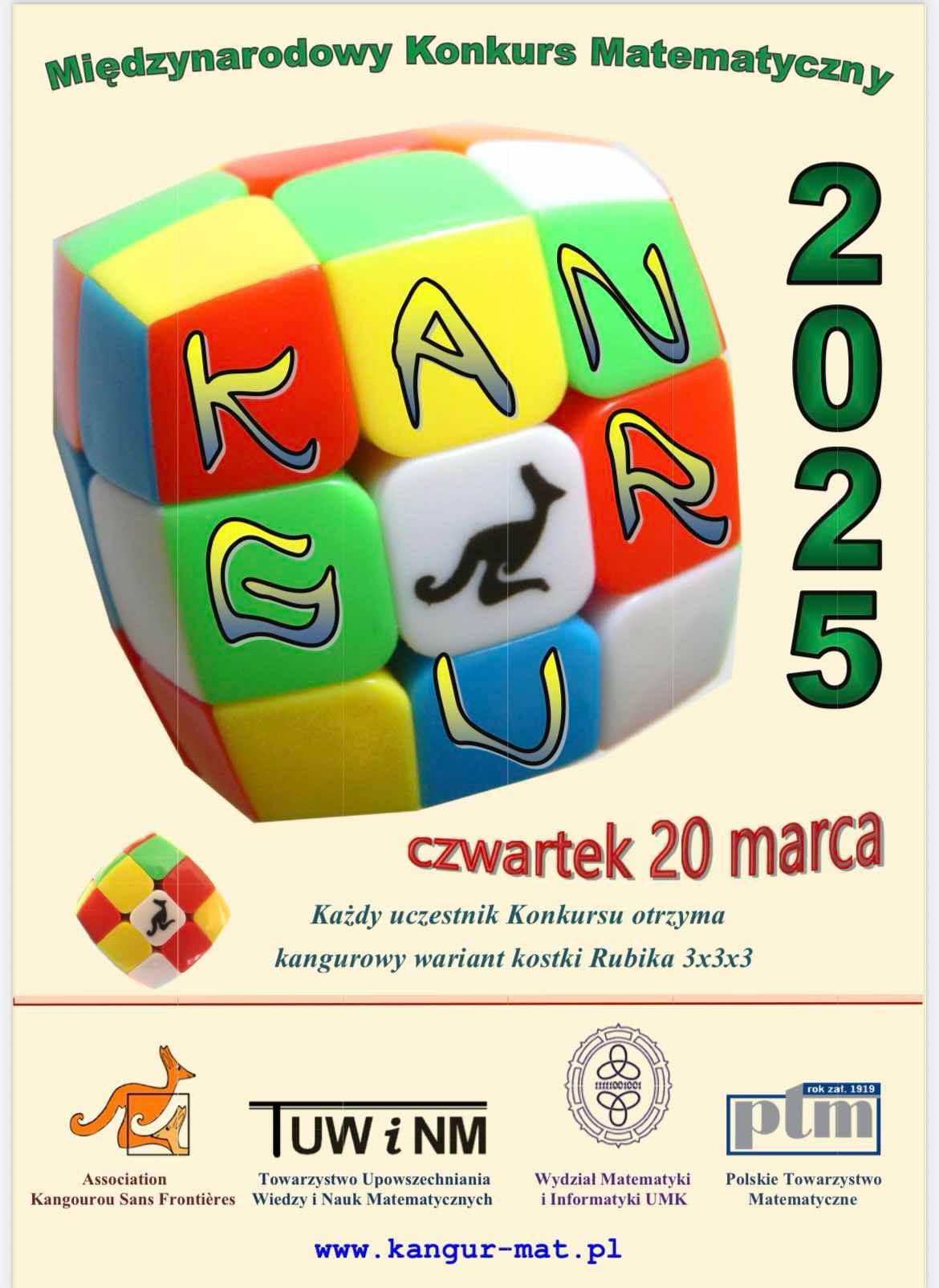 Dnia 20 marca 2025r. odbył się w naszej szkole Międzynarodowy Konkurs: „Kangur Matematyczny”. W tym roku wzięła w nim udział bardzo duża grupa uczniów z klas II-VII - 30. W kategorii Żaczek (klasa 2): Oskar Matuszewski, Maja Grabiasz, Aleksandra Kowalska, Milena Holota, Lena Senderak, Magdalena Kuska, Natasza Chmiel, Oliwier Łukasik i Oliwia Piórkowska. W kategorii Maluch (klasa 3 i 4)– Zuzanna Jagielska, Oliwier Janiczek, Mateusz Pijanowski i Błażej Tabor. W kategorii Beniamin (klasa 5 i 6): Miłosz Marosz, Weronika Tabor, Karolina Kuska, Izabela Rosiek, Maja Ujejska, Gabriela Burkowicz, Anna Cieśla, Nikola Tabor, Dominik Dębosz, Jakub Wojas, Maciej Dudzic, Gabriel Senderak i Bartłomiej Dudek. W ostatniej kategorii dla szkoły podstawowej- Kadet (klasa 7 i 8): Julia Tabor, Alicja Marzec, Kinga Kamieńska i Patryk Stawarz. Wyniki konkursu ogłoszono 7 maja 2025r. Bardzo miło nam poinformować, że drugi rok z rzędu wyróżnienie zdobyła uczennica klasy trzeciej Zuzanna Jagielska. Nagrody i dyplomy zostaną wręczone w czerwcu. Gratulujemy!