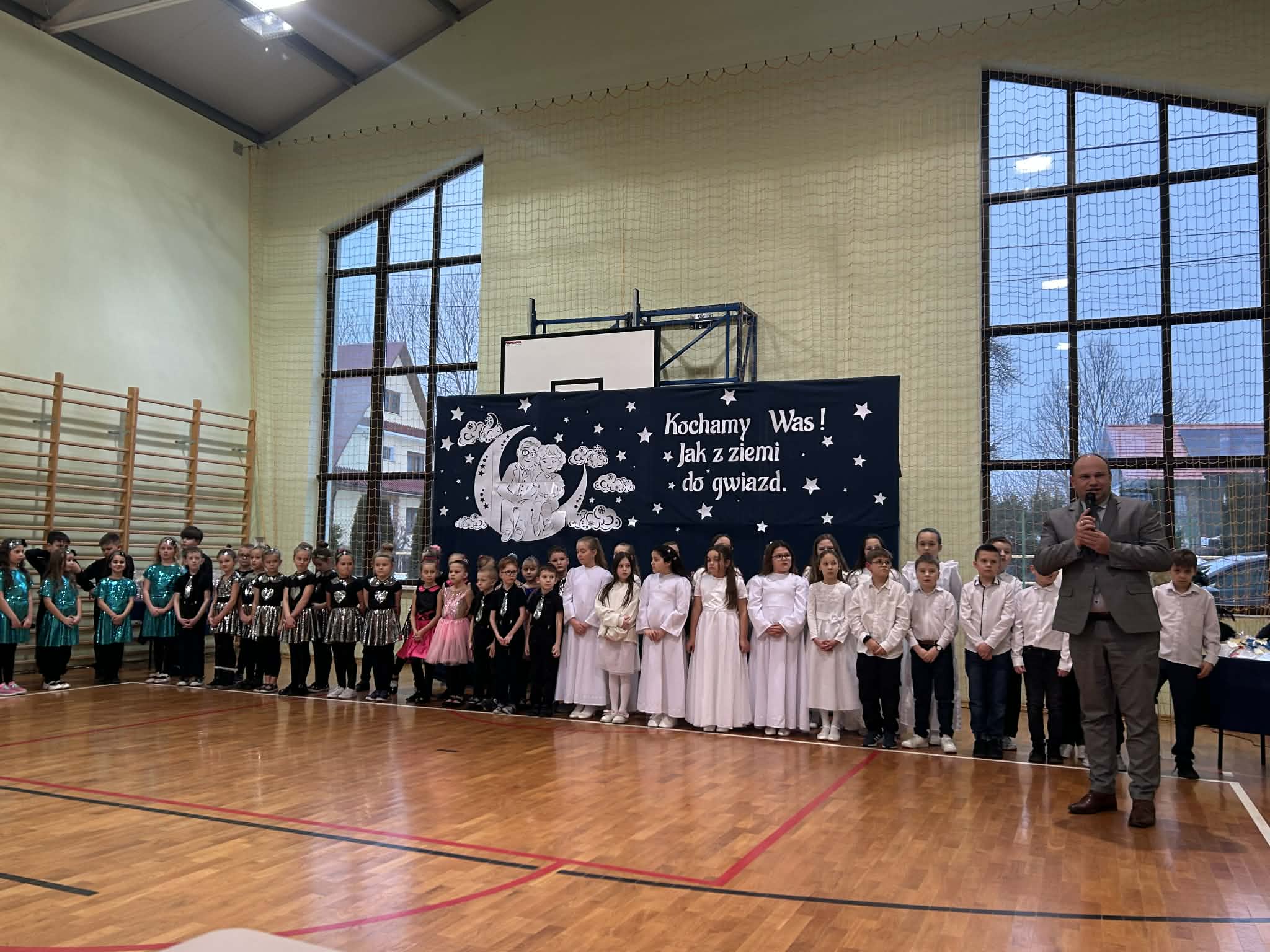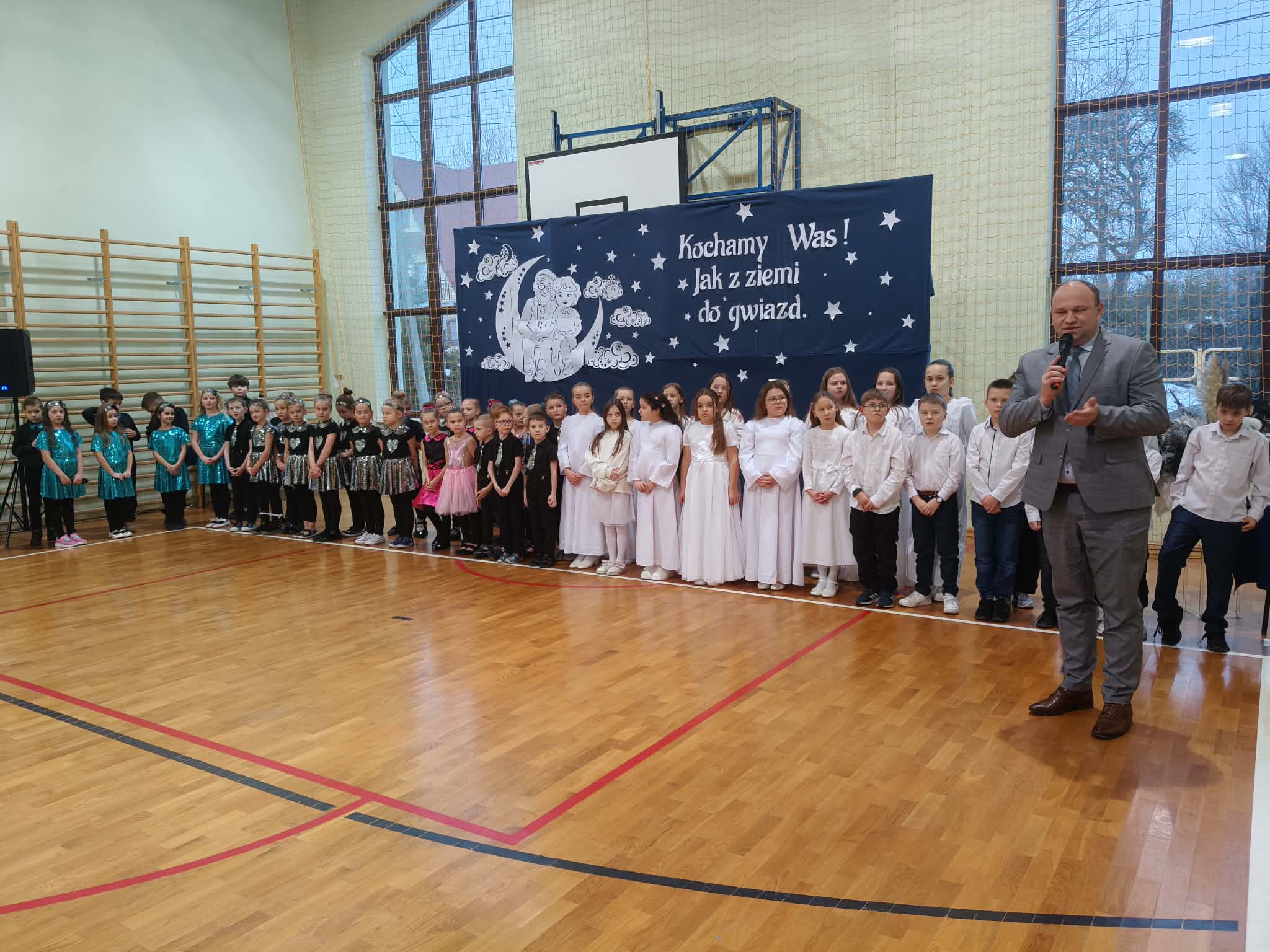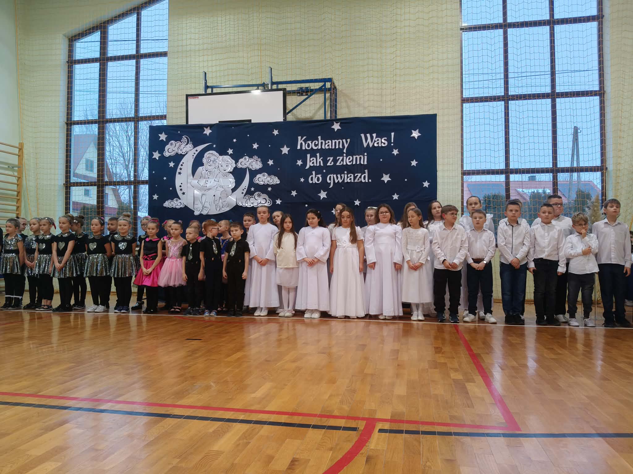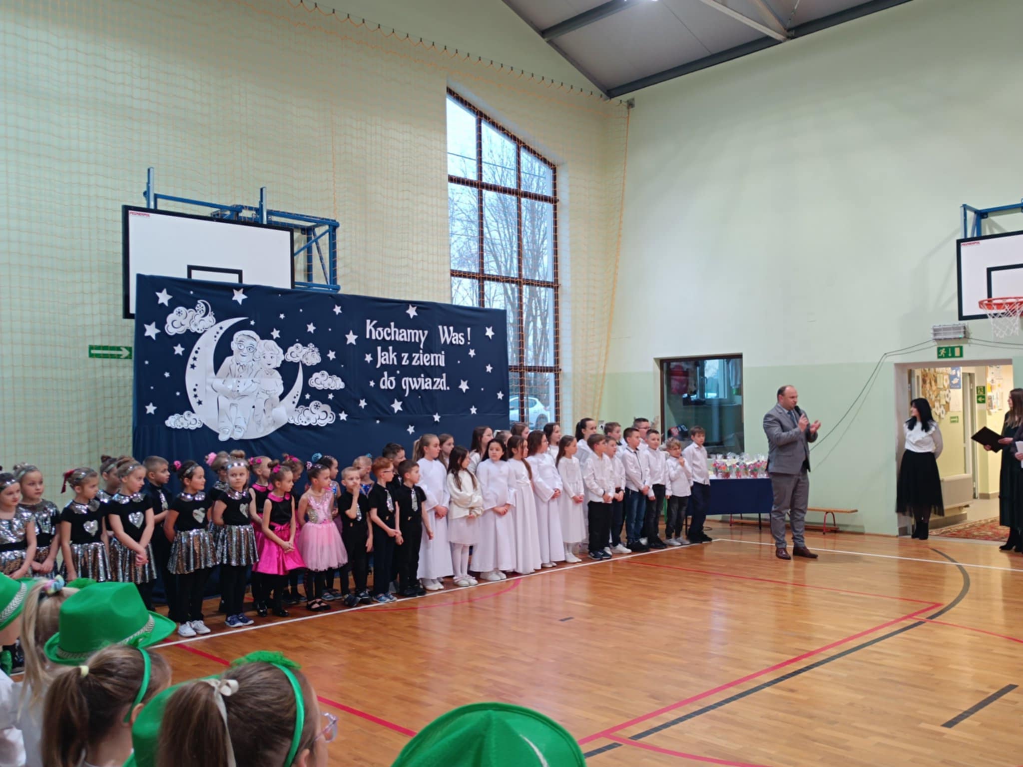 Piątkowy wieczór upłynął w naszej szkole w wyjątkowo ciepłej i radosnej atmosferze. Wszystko za sprawą niezwykłej i długo wyczekiwanej uroczystości z okazji Dnia Babci i Dziadka, do której gorliwie i z zapałem się przygotowywaliśmy. W naszych progach powitaliśmy WYJĄTKOWYCH GOŚCI- CUDOWNE BABCIE I PRZEMIŁYCH DZIADKÓW, z rodzin dzieci z oddziału przedszkolnego oraz klas I-III. Nasza sala gimnastyczna wypełniła się po brzegi.