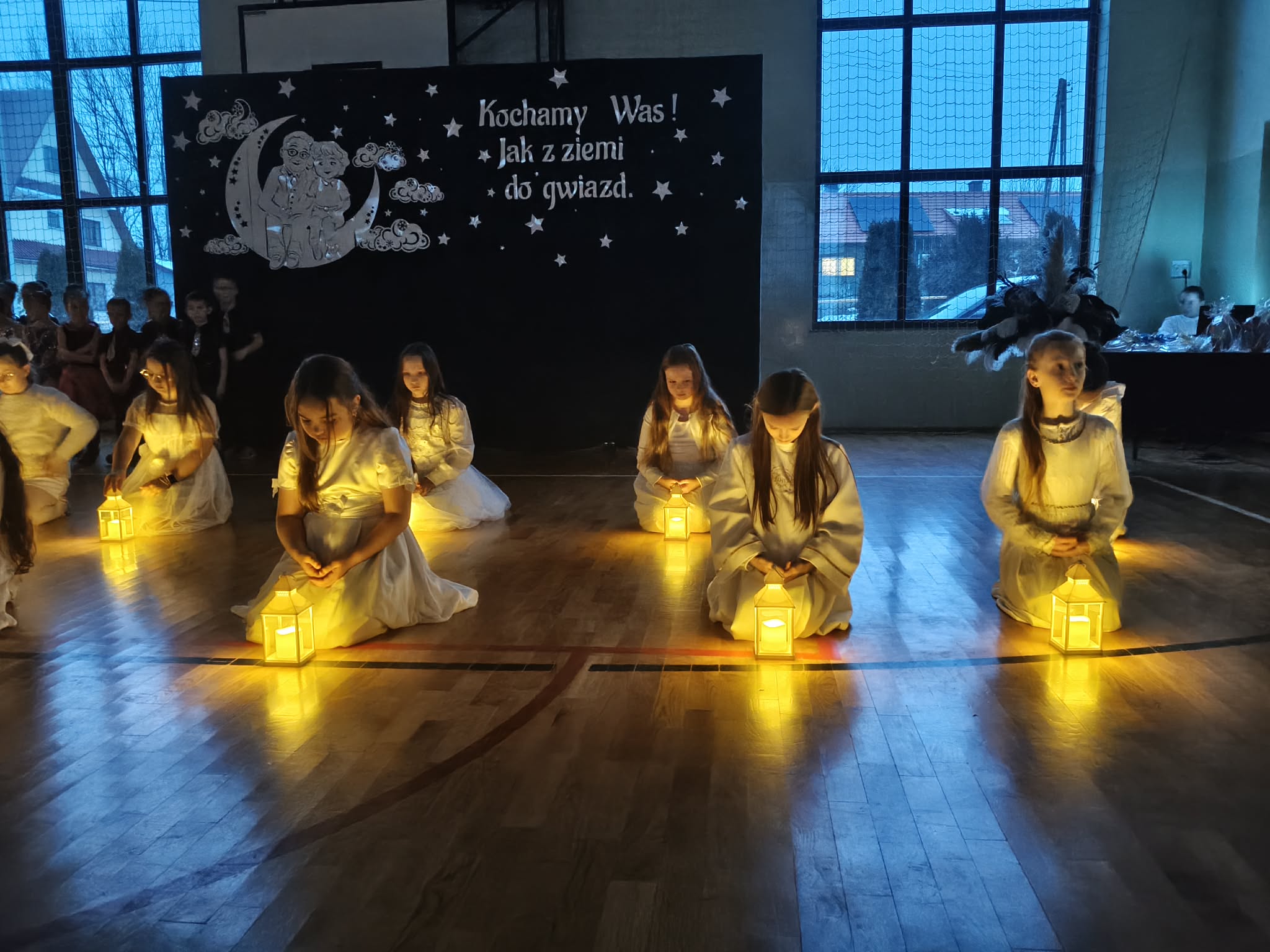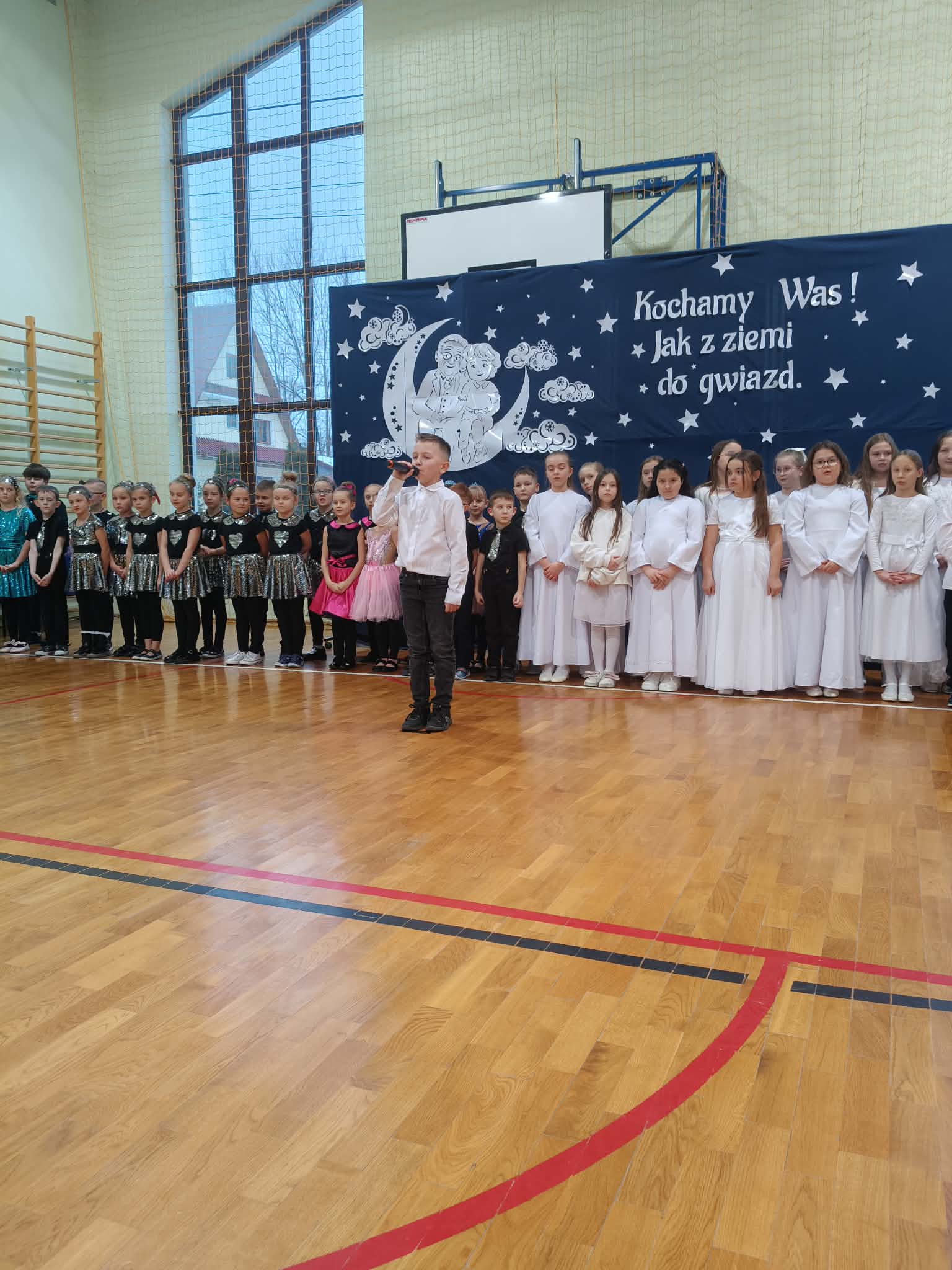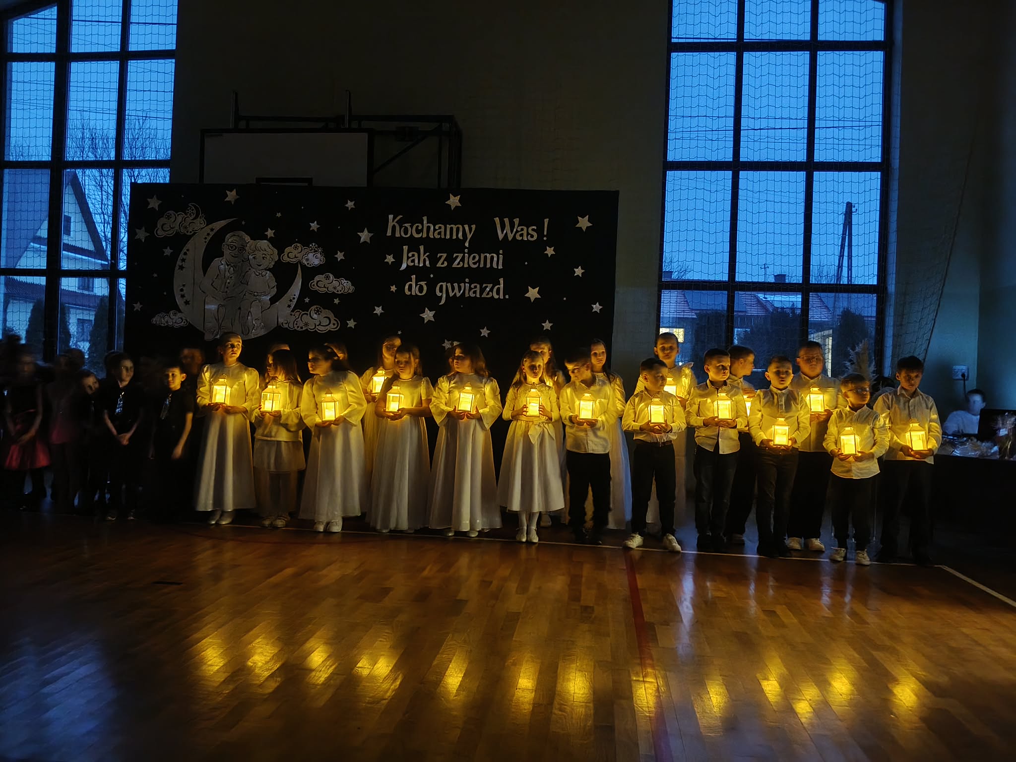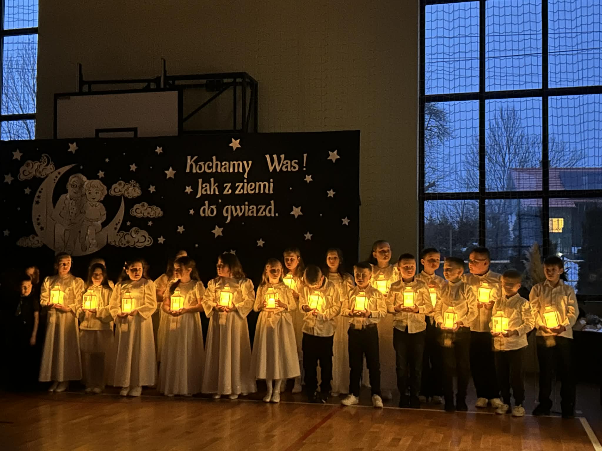Piątkowy wieczór upłynął w naszej szkole w wyjątkowo ciepłej i radosnej atmosferze. Wszystko za sprawą niezwykłej i długo wyczekiwanej uroczystości z okazji Dnia Babci i Dziadka, do której gorliwie i z zapałem się przygotowywaliśmy. W naszych progach powitaliśmy WYJĄTKOWYCH GOŚCI- CUDOWNE BABCIE I PRZEMIŁYCH DZIADKÓW, z rodzin dzieci z oddziału przedszkolnego oraz klas I-III. Nasza sala gimnastyczna wypełniła się po brzegi.