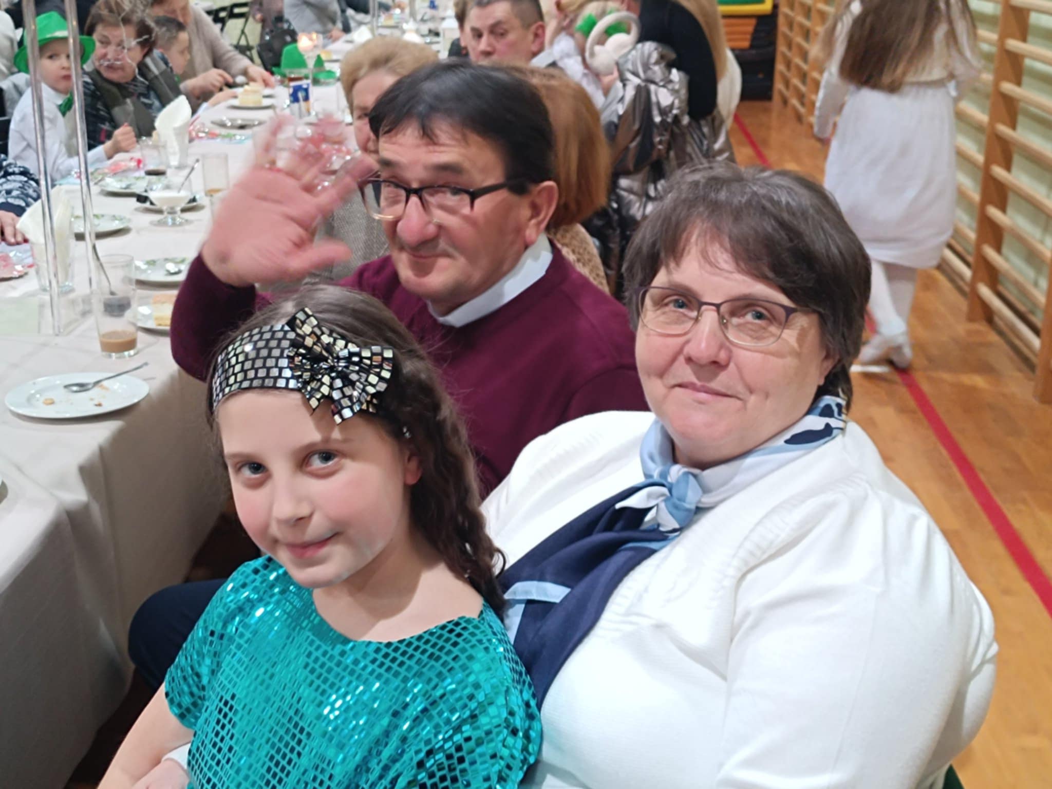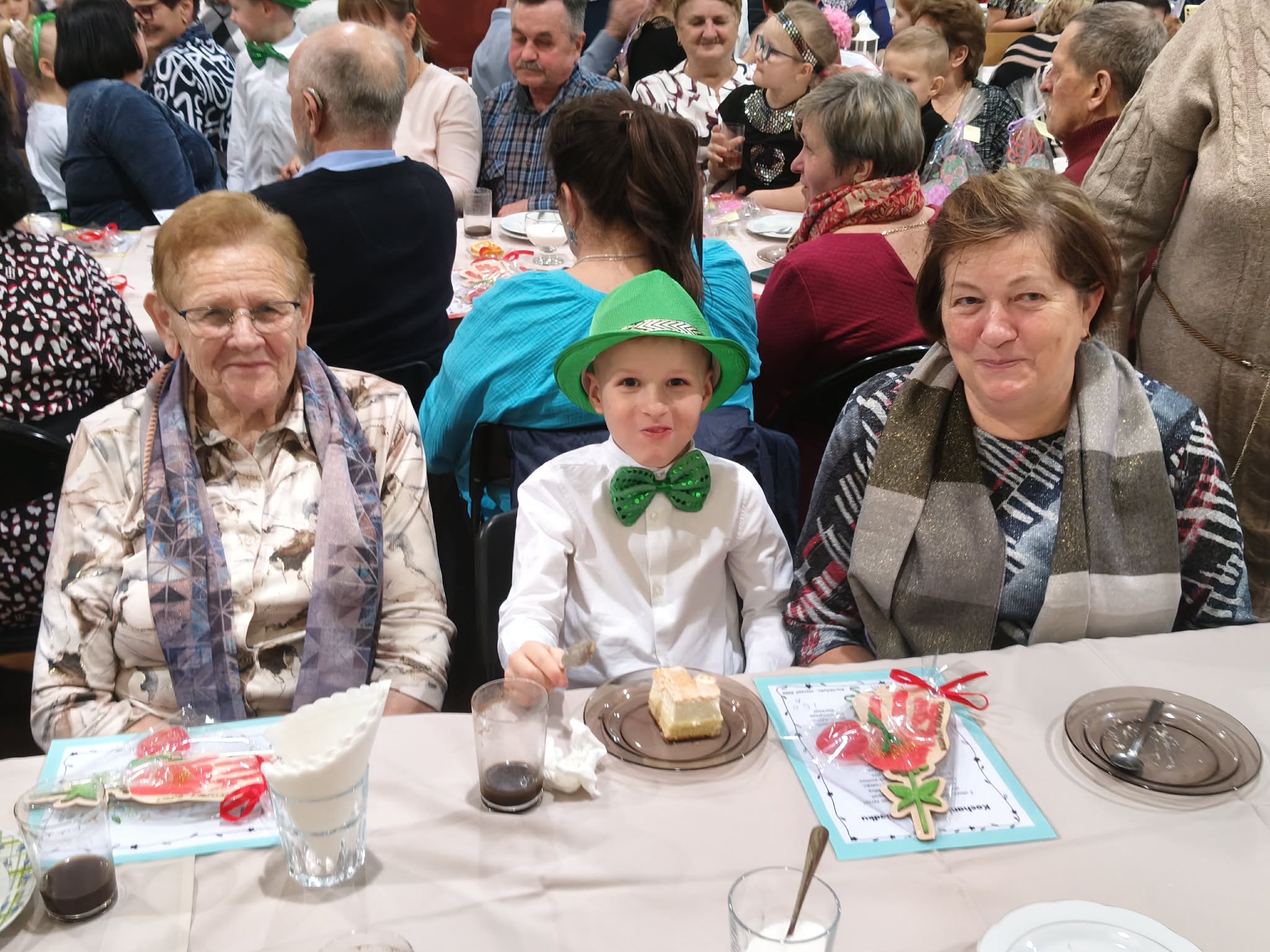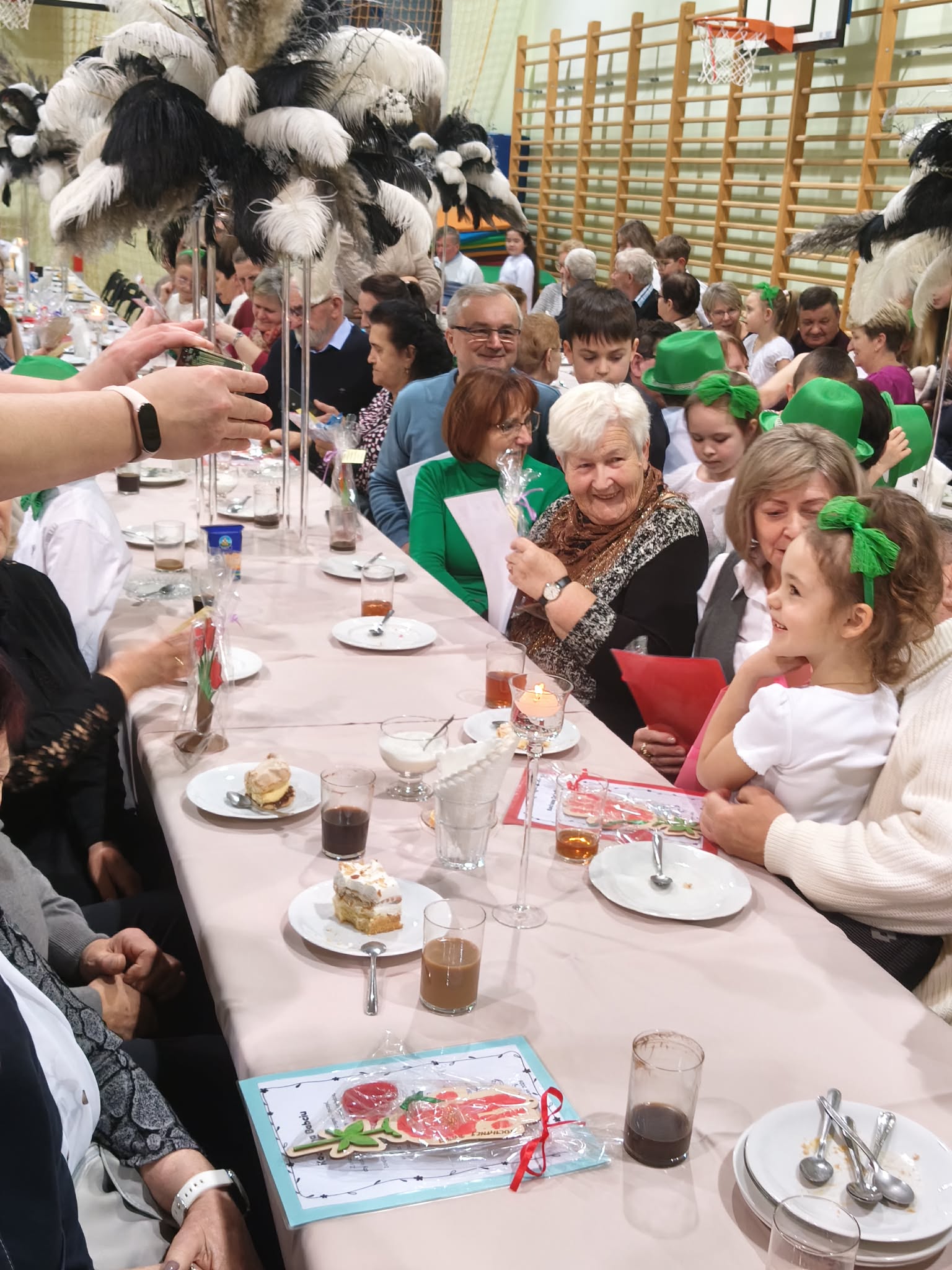 Po części artystycznej wnuczęta z radością wręczyły swoim ukochanym dziadkom własnoręcznie wykonane upominki. Następnie wszyscy zaproszeni mogli skosztować słodkich wypieków przygotowanych przez niezawodnych i jak zwykle chętnych do pomocy Rodziców. Uroczystość zakończyła się wspólnymi rozmowami przy stole, łącząc pokolenia i tworząc niezapomnianą atmosferę pełną uśmiechów i radości. BARDZO DZIĘKUJEMY WSZYSTKIM ZAANGAŻOWANYM W ORGANIZACJĘ I PRZEBIEG TEJ PIĘKNEJ UROCZYSTOŚCI. PO RAZ KOLEJNY POKAZALIŚMY, ŻE RAZEM MOŻEMY TAK WIELE!!!