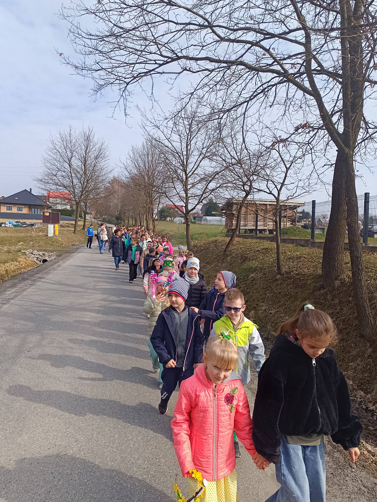 Obchody Dnia Wiosny!!! Z inicjatywy Samorządu Uczniowskiego odbył się dziś w naszej szkoły krótki apel z Okazji Pierwszego Dnia WIOSNY. Oprócz kolorowych strojów jakie założyli z tej okazji uczniowie, podziwiać mogliśmy również wspaniałe prace, które wzięły udział w konkursie na najbardziej oryginalne WIOSENNE OKULARY! Zainteresowanie konkursem było ogromne ! Ciężko było wyłonić te najpiękniejsze prace, ale dla docenienia wysiłku i pomysłowości na wszystkich uczestników czekały nagrody przygotowane przez SU. Po krótkim apelu cała społeczność szkolna udała się na tradycyjny już od kilku lat Pochód Wiosenny drogami Kierlikówki.