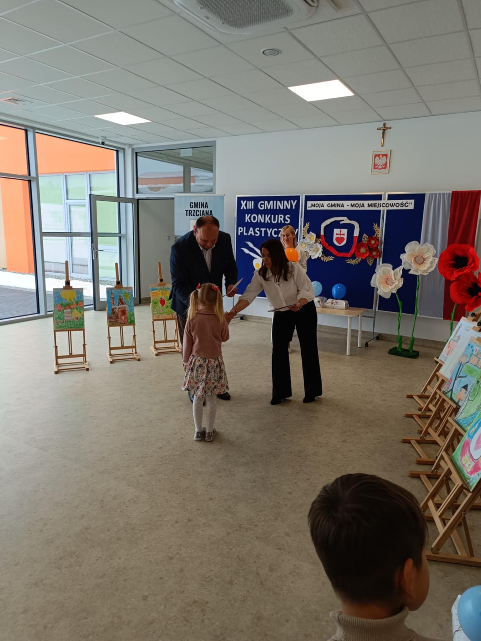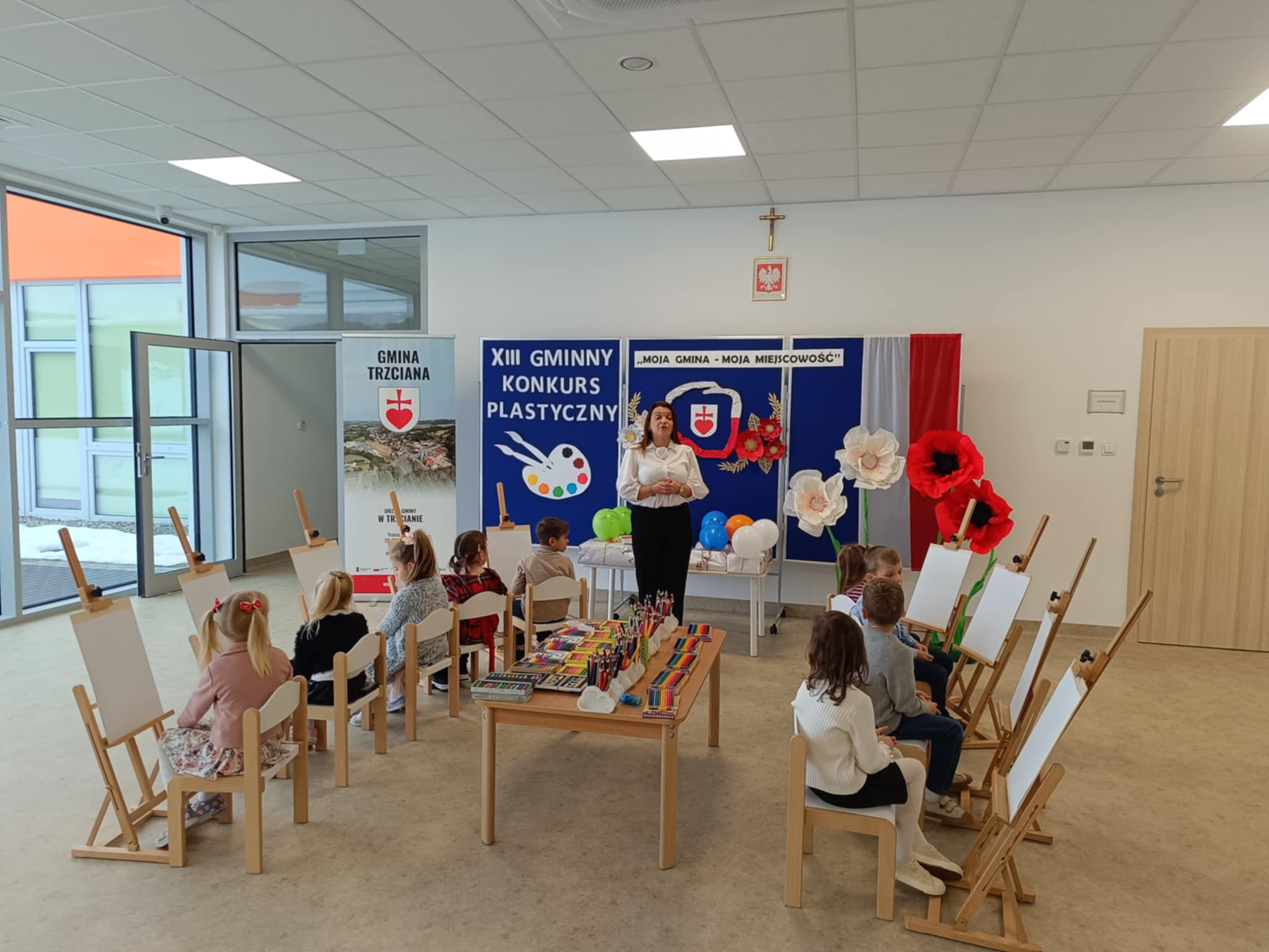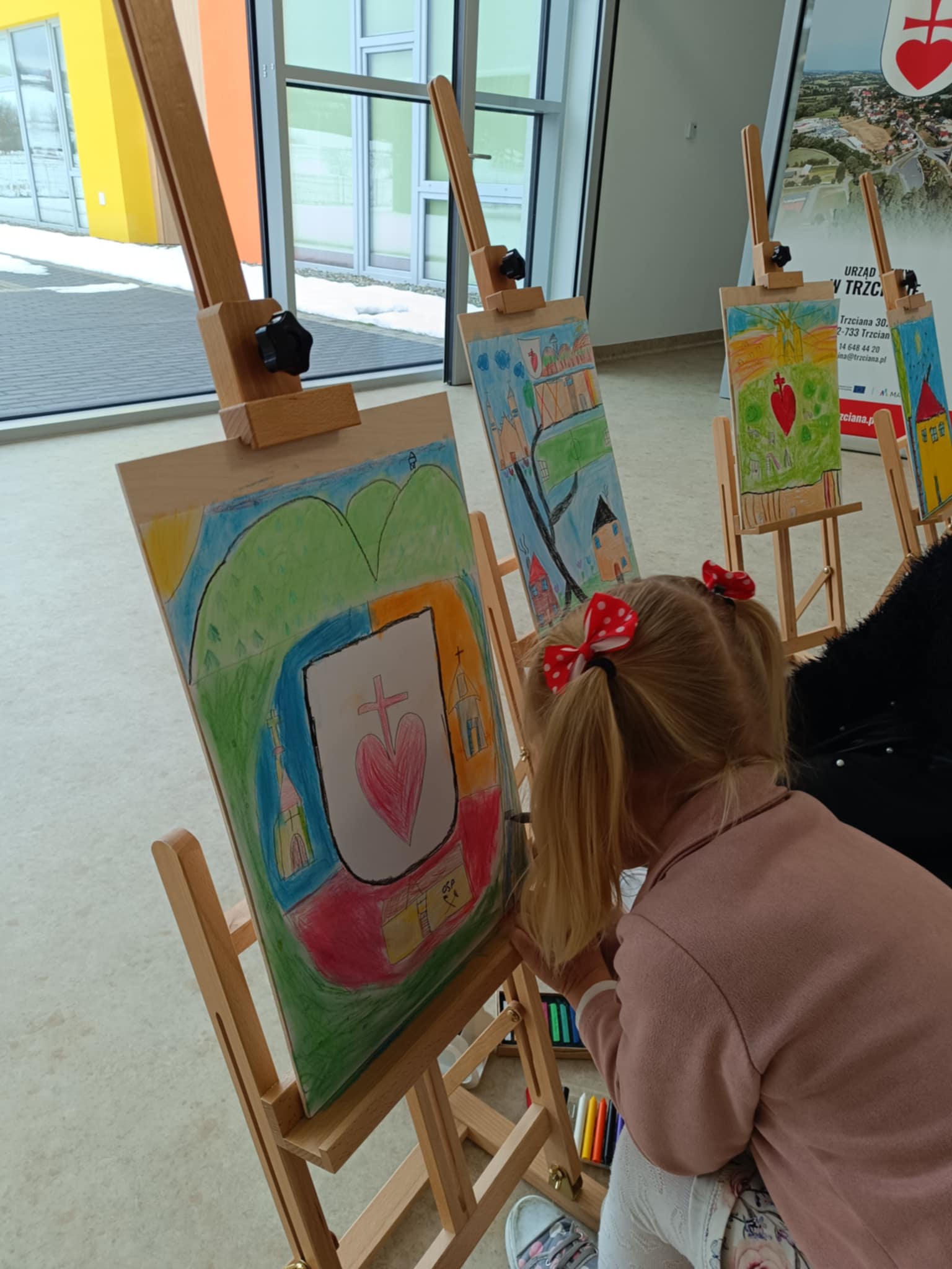 W dniu dzisiejszym reprezentantka oddziału przedszkolnego- Emilka Skiba wzięła udział w XIII Gminnym Konkursie Plastycznym „MOJA GMINA – MOJA MIEJSCOWOŚĆ” pod patronatem Wójta Gminy Trzciana, Pana Cezarego Stawarza. Emilka podobnie jak reszta uczestników wspaniale poradziła sobie z niełatwym zadaniem- rysowaniem na prawdziwych sztalugach jak profesjonalni artyści. Serdecznie dziękujemy dyrekcji i pracownikom Publicznego Przedszkola w Trzcianie za zaproszenie, miłą atmosferę i piękną gościnę. Emilce gratulujemy odwagi, talentu i życzymy dalszych sukcesów.