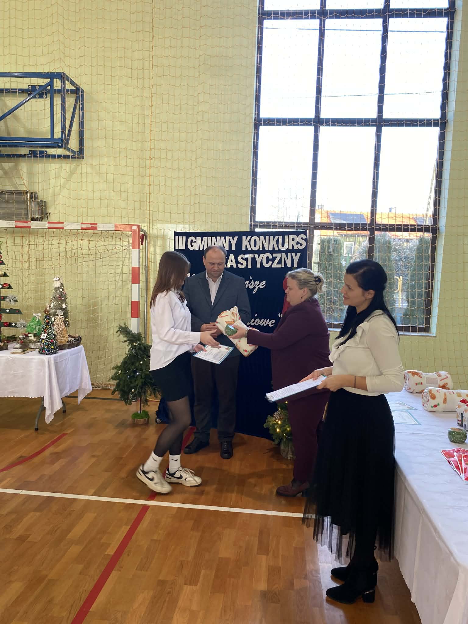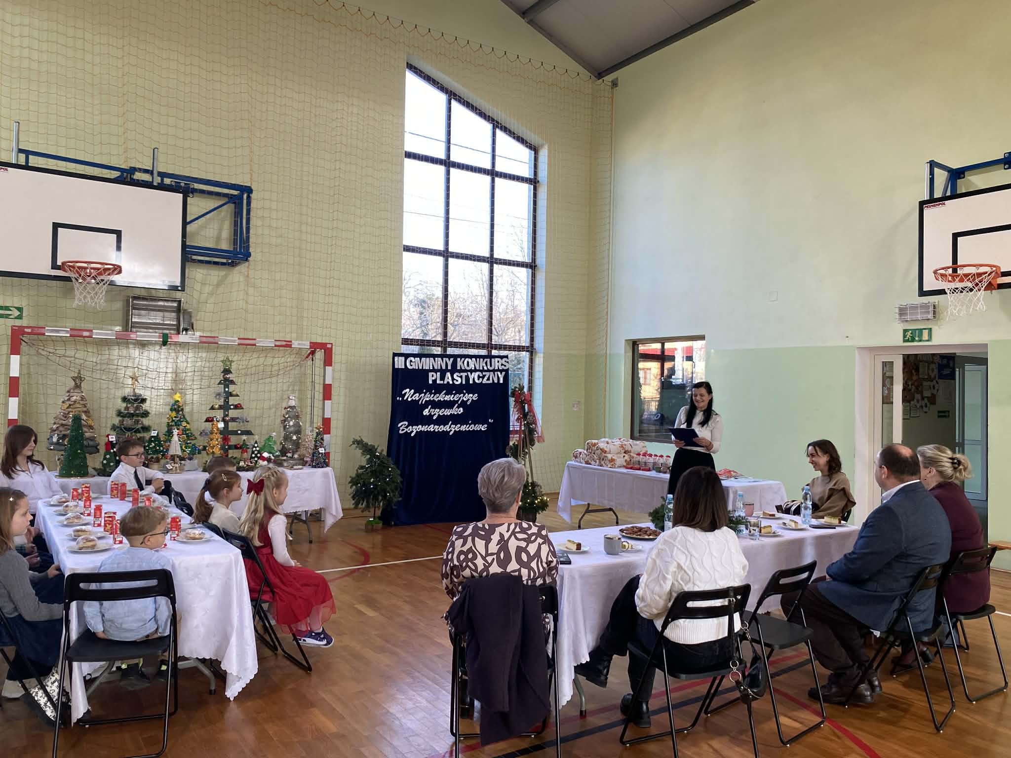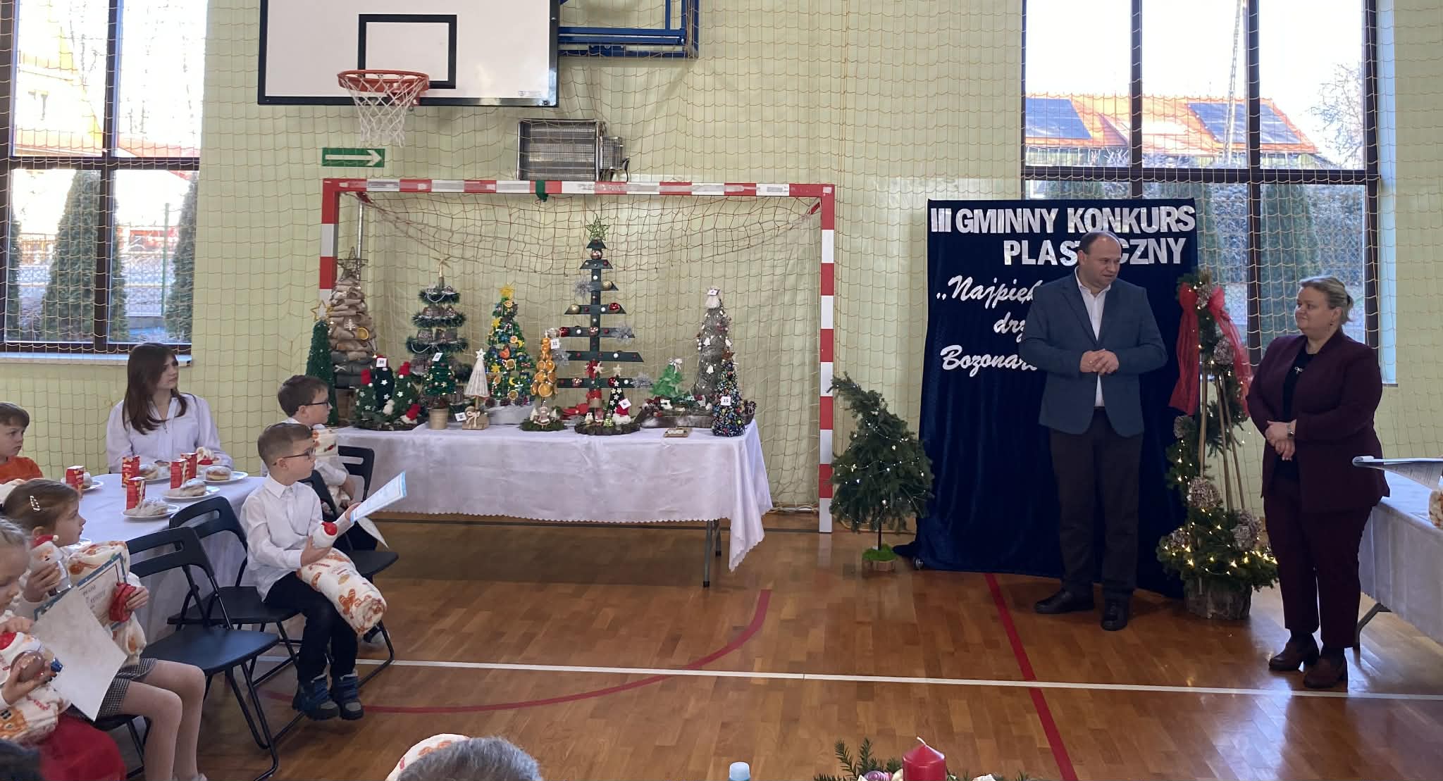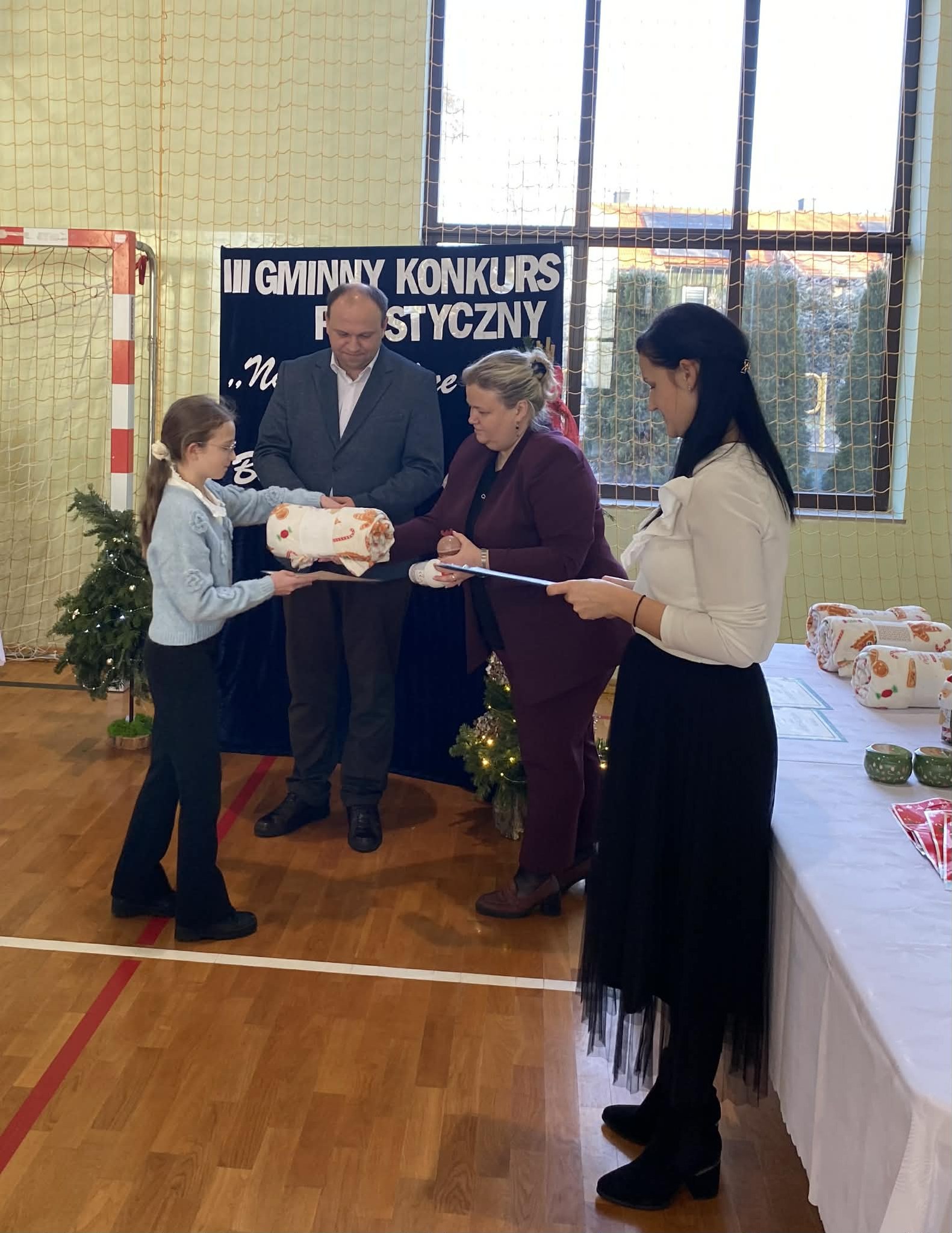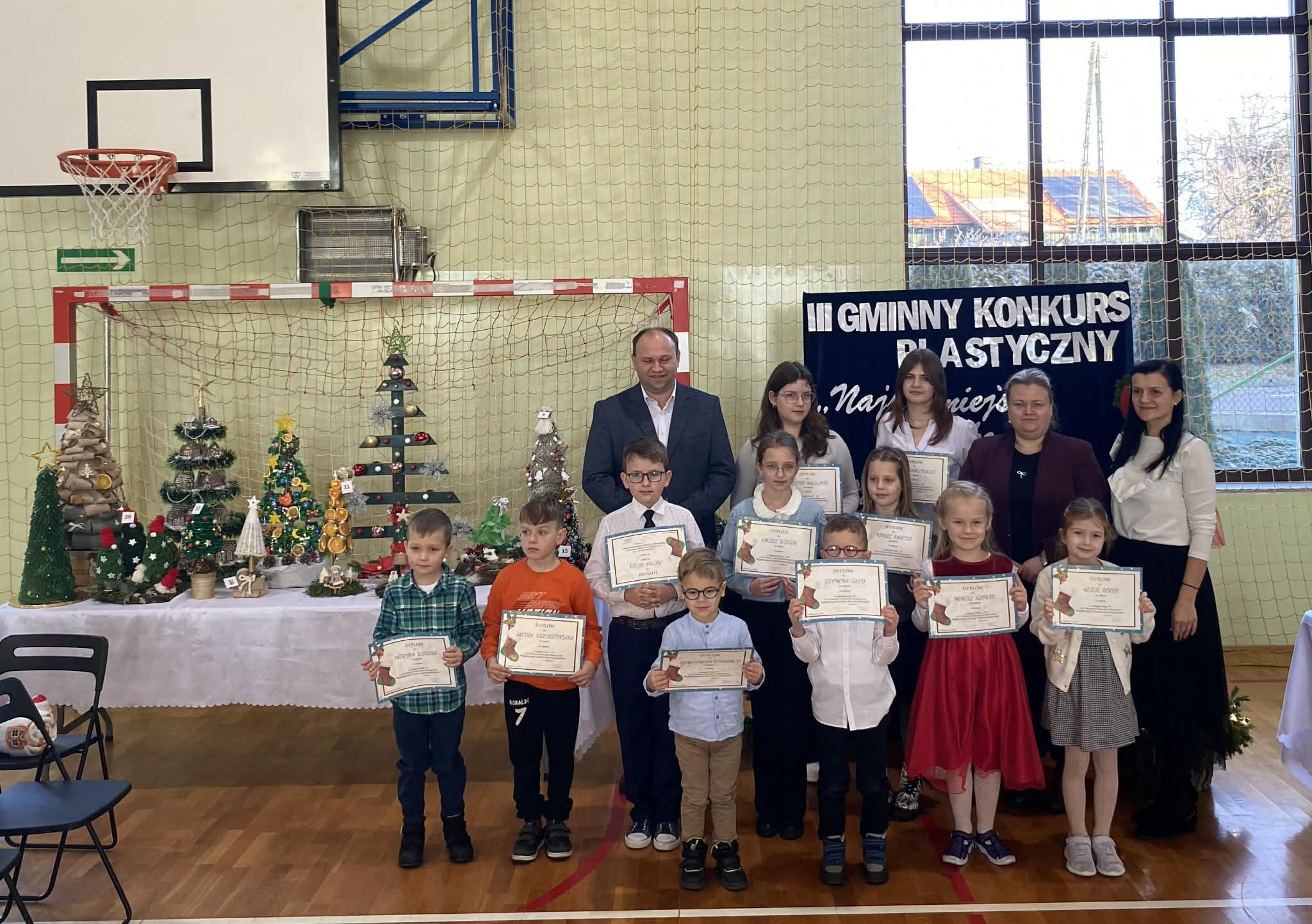 Dziś w naszej szkole był wyjątkowy dzień. Nadszedł czas ogłoszenia wyników i wręczenia nagród w III Gminnym Konkursie Plastycznym „Najpiękniejsze Drzewko Bożonarodzeniowe” organizowanego przez naszą szkołę. Gościliśmy dziś Pana Wójta Cezarego Stawarza, nauczycieli-opiekunów ze szkół z naszej gminy a przede wszystkim uczniów- małych artystów.