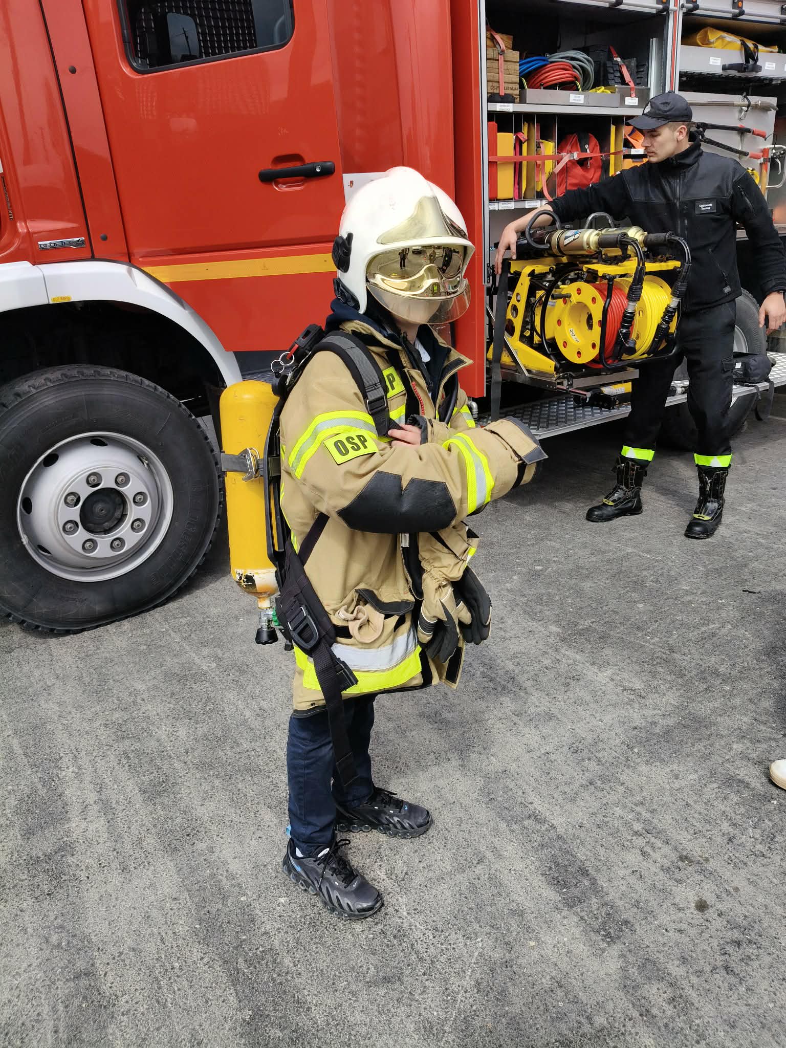 Jak wiadomo – każdy chłopiec w dzieciństwie marzył o tym, by zostać strażakiem . Dziś Nikodem miał okazję choć na chwilę spełnić to marzenie. Z ogromnym zaangażowaniem uczestniczył we wszystkich aktywnościach – chętnie się zgłaszał i często był pierwszy do działania! Miał okazję poszerzyć swoją wiedzę, zdobyć nowe doświadczenia oraz spędzić czas w inspirującym środowisku. Dodatkową atrakcją była wizyta w nowej remizie OSP