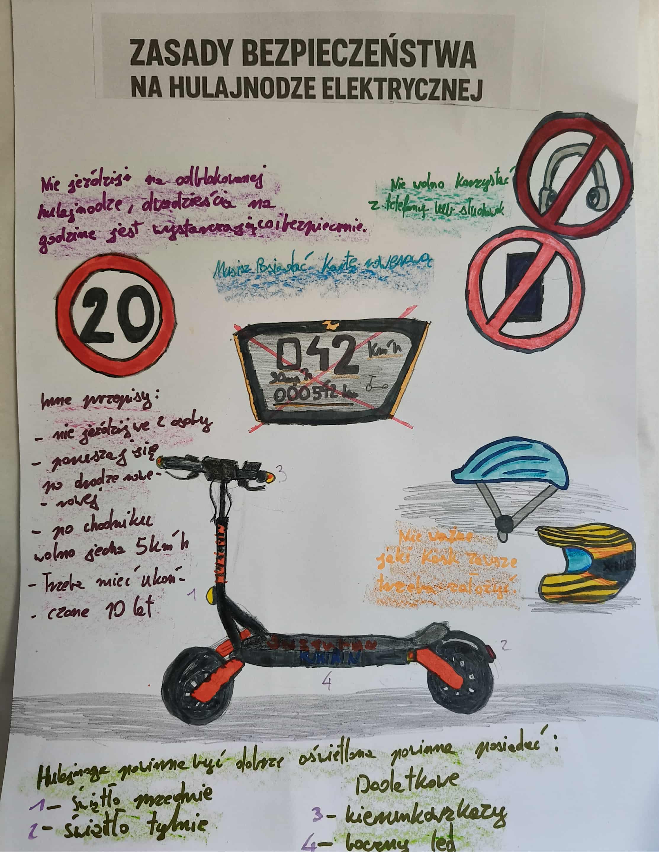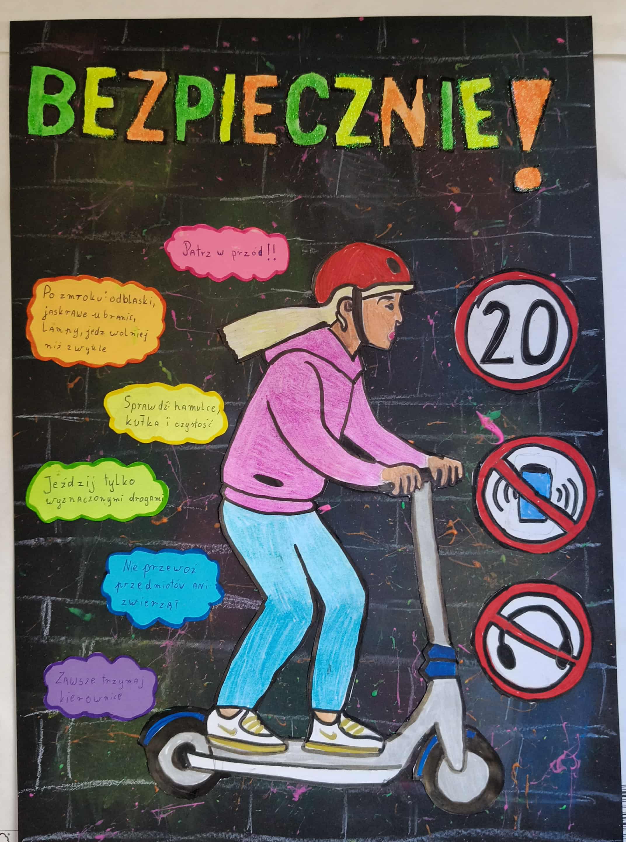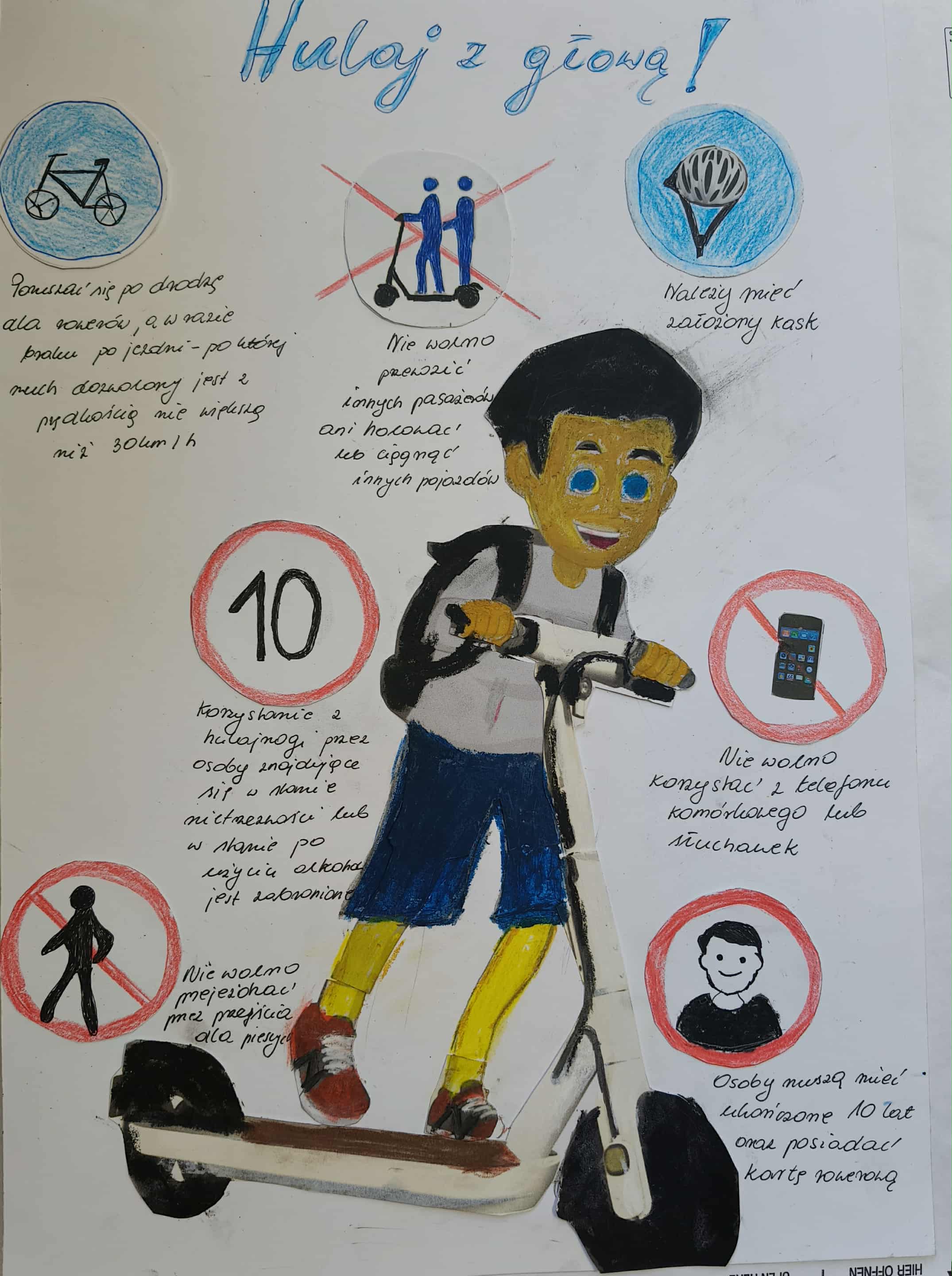 Z dumą informujemy, że Eliza Błasińska, uczennica naszej szkoły zajęła III miejsce w kategorii klas IV-VI wykonując plakat ostrzegawczy nawiązujący do myśli przewodniej konkursu: „Hulajnoga to frajda fantastyczna, lecz bez rozwagi bywa tragiczna!”