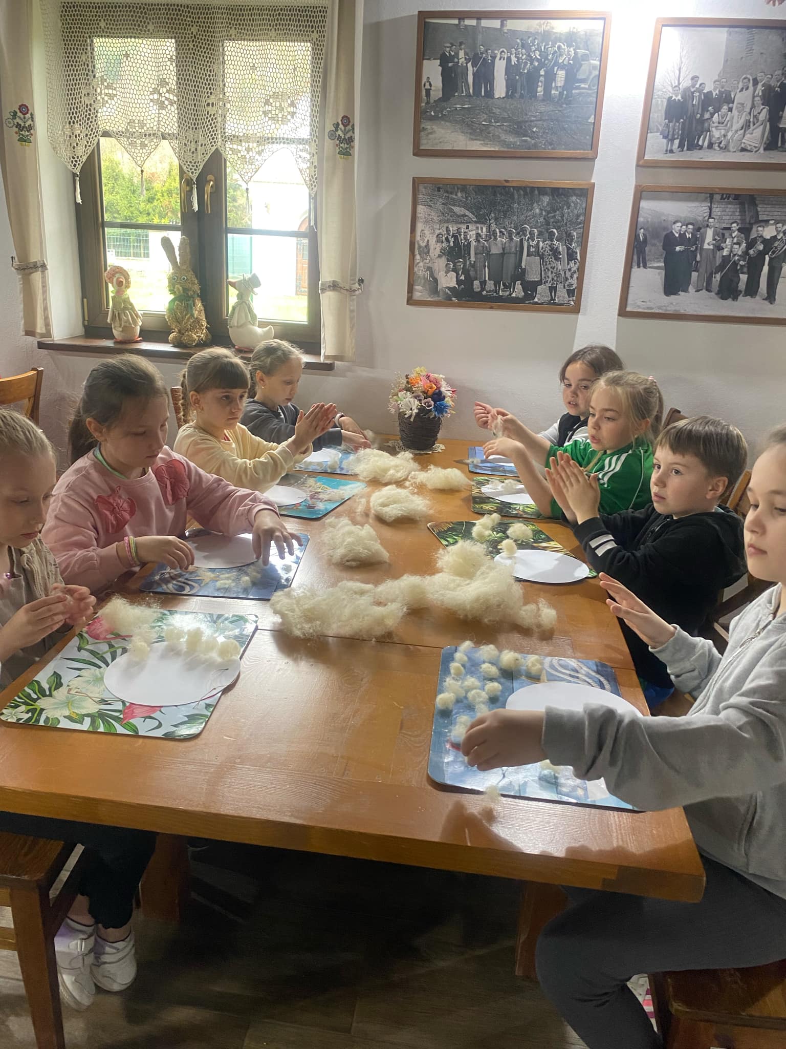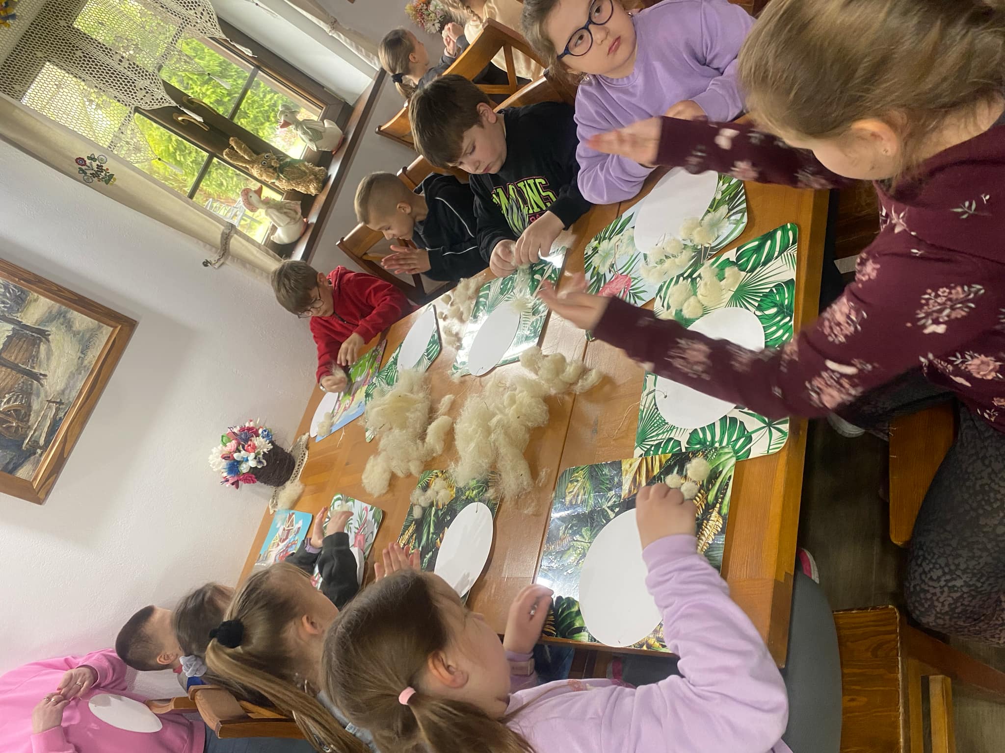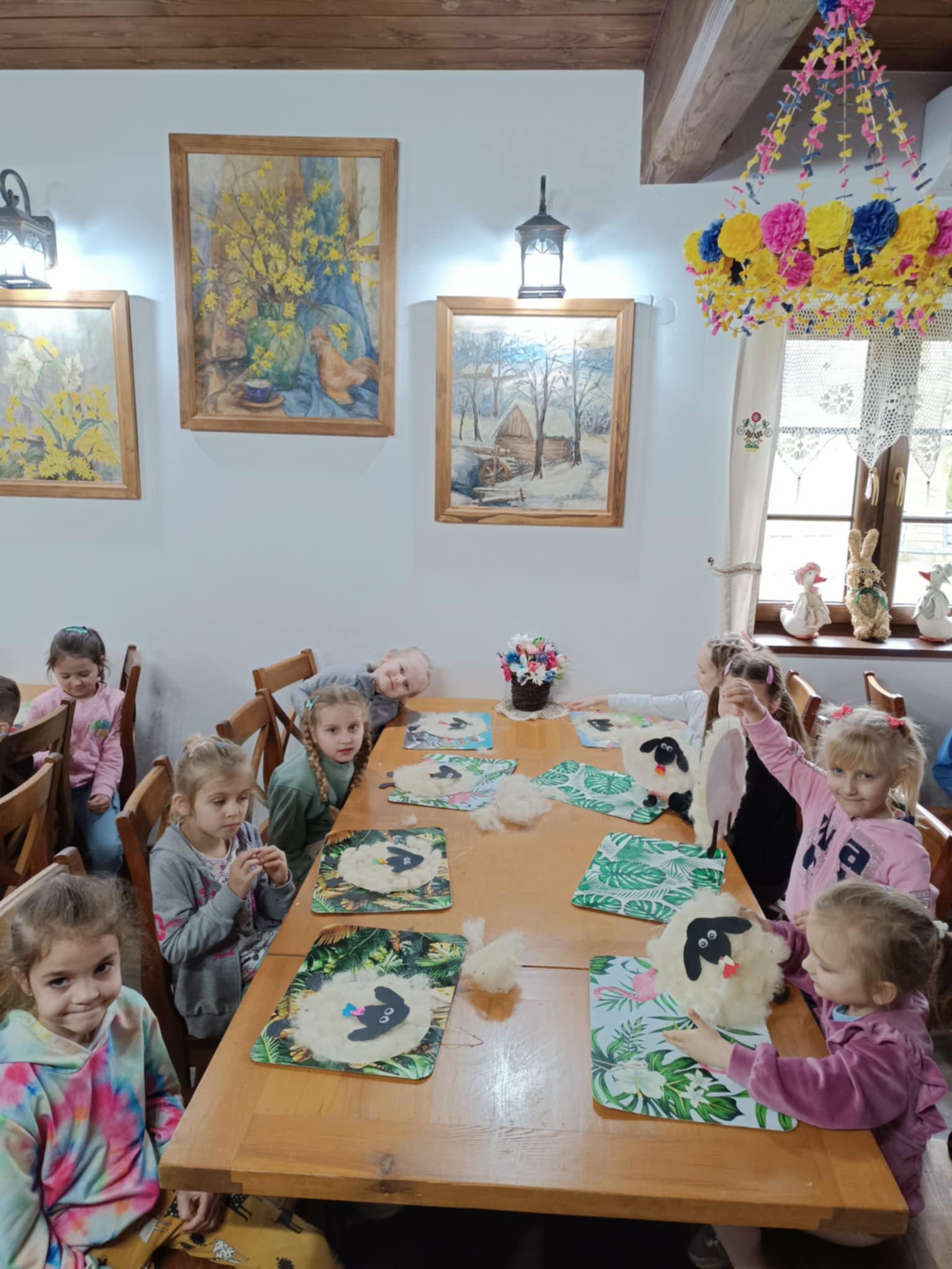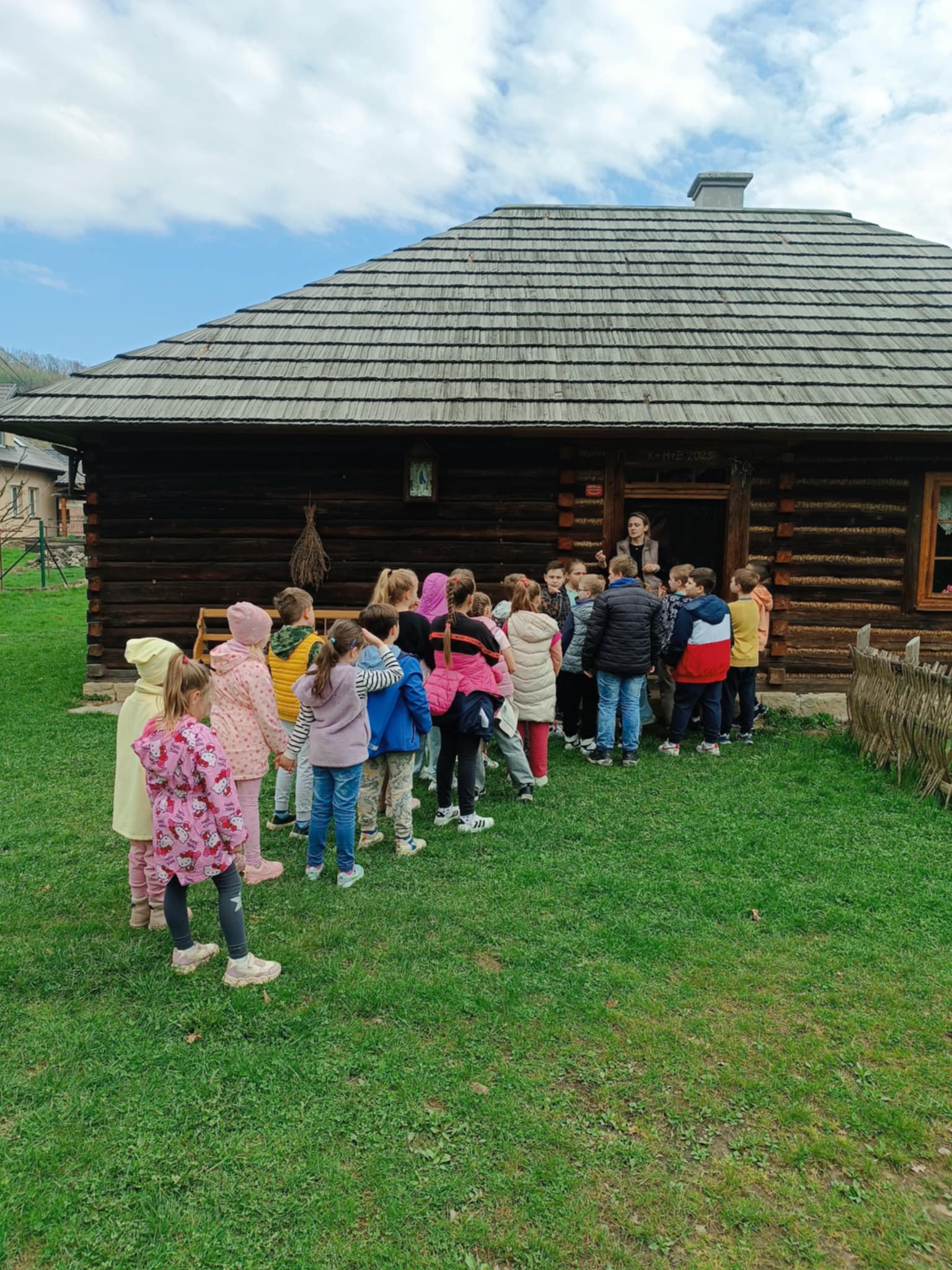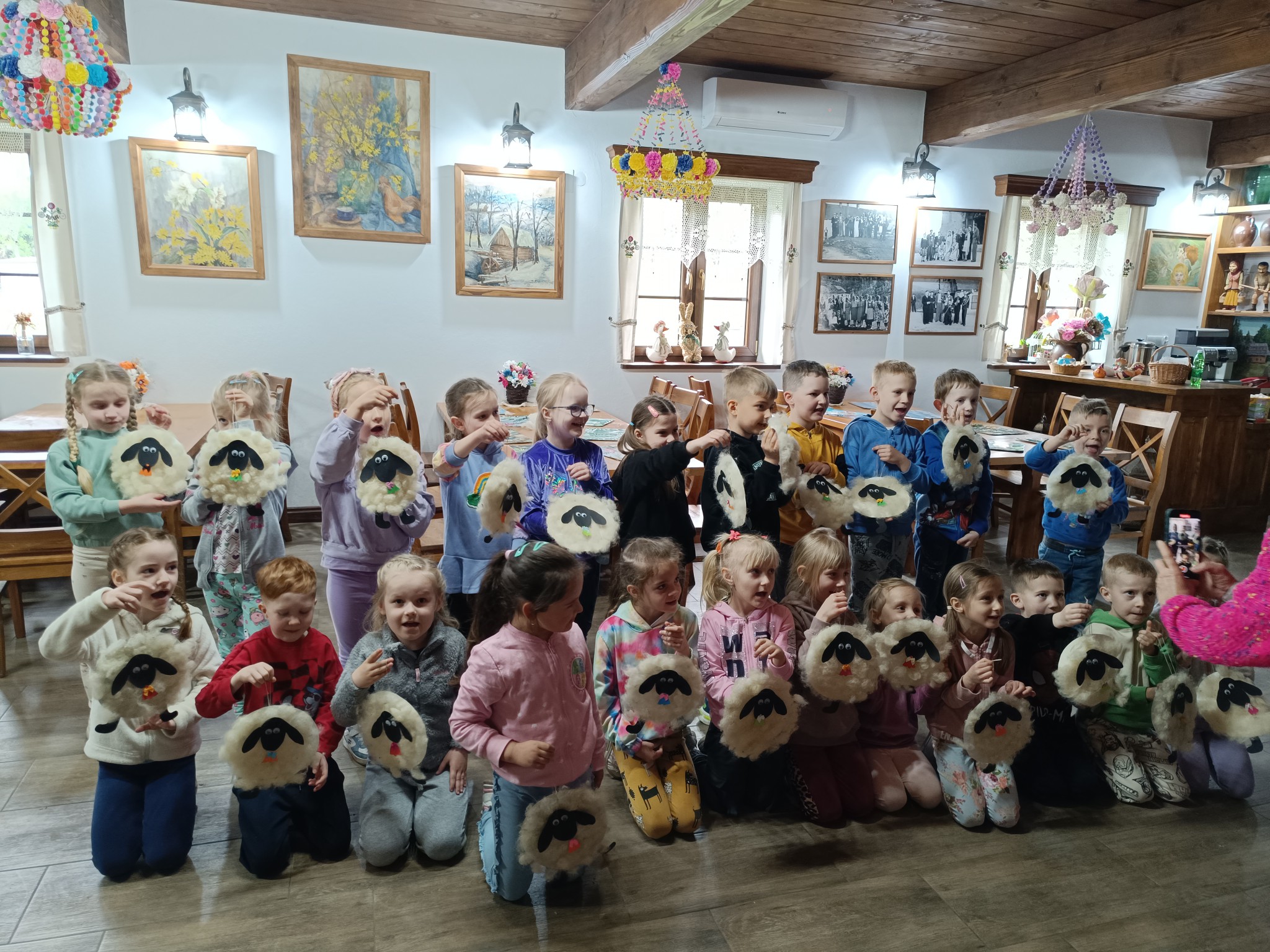 14 kwietnia dzieciaki z oddziału przedszkolnego oraz uczniowie klas I-III wybrali się do pobliskiej Laskowej, aby przeżyć radosną, wiosenną przygodę. Naszym celem był położony w malowniczej scenerii #SKANSENNAJĘDRZEJKÓWCE . Dzień rozpoczął się serdecznym przywitaniem z sympatycznymi animatorkami oraz pałaszowaniem słodkich racuszków. Po wspólnym śniadaniu był czas na zwiedzanie skansenu- zapoznanie się z architekturą dawnych wsi, warunkami życia oraz pracy ludzi na wsiach w dawnych czasach, oglądanie dawnych mebli, sprzętów domowych oraz sprzętów potrzebnych w każdym gospodarstwie. Każdy uczestnik wycieczki mógł się „przenieść w czasie„ wchodząc do starej chałupy ze stajenką i stodołą, zobaczyć młyn wodny, kuźnię i dawne narzędzia kowala, spichlerze, suszarnie do owoców czy pasiekę. Zważając na to, że w dawnych czasach rytm życia na wsi wyznaczały prace w polu i święta kościelne to z okazji zbliżającej się WIELKANOCY dzieciaki miały też okazję uczestniczyć w PLASTYCZNYCH WARSZTATACH WIELKANOCNYCH, gdzie wykonywały baranki z prawdziwej wełny oraz dowiedziały się jakie obrzędy i tradycje wielkanocne obowiązywały na dawnej wsi, jakie przetrwały do współczesności. Po zajęciach warsztatowych był czas na radosne podskoki na placu zabaw oraz karmienie zwierzaków na stałe mieszkających w ZAGRODZIE NA JĘDRZEJKÓWCE. Na zmęczonych harcami uczestników wyjazdu czekał również pyszny obiad, po którym musieliśmy wyruszyć w drogę powrotną do szkoły. Bardzo dziękujemy PANIOM ANIMATORKOM i obsłudze skansenu za bardzo miłe przyjęcie i super zabawę!!! Polecamy się na przyszłość
