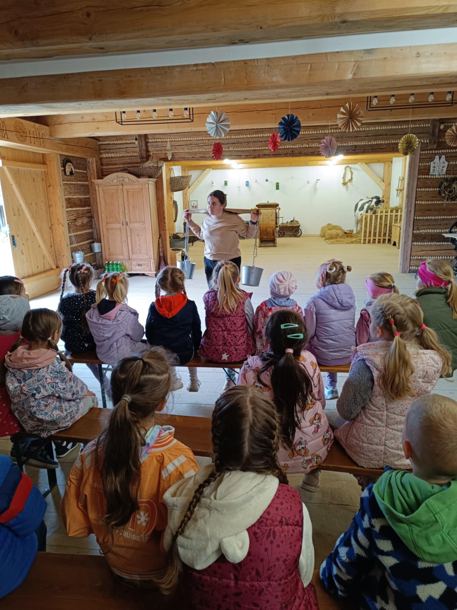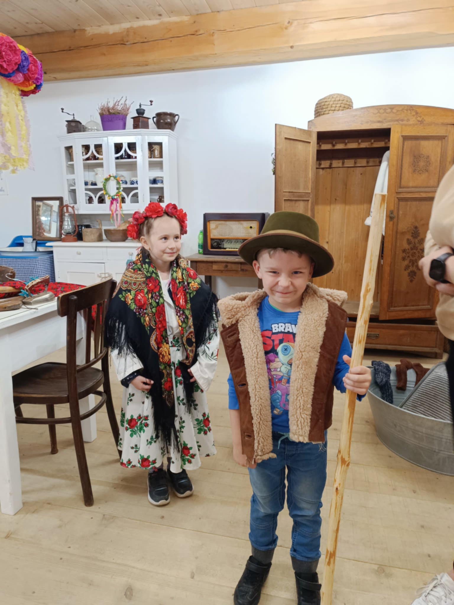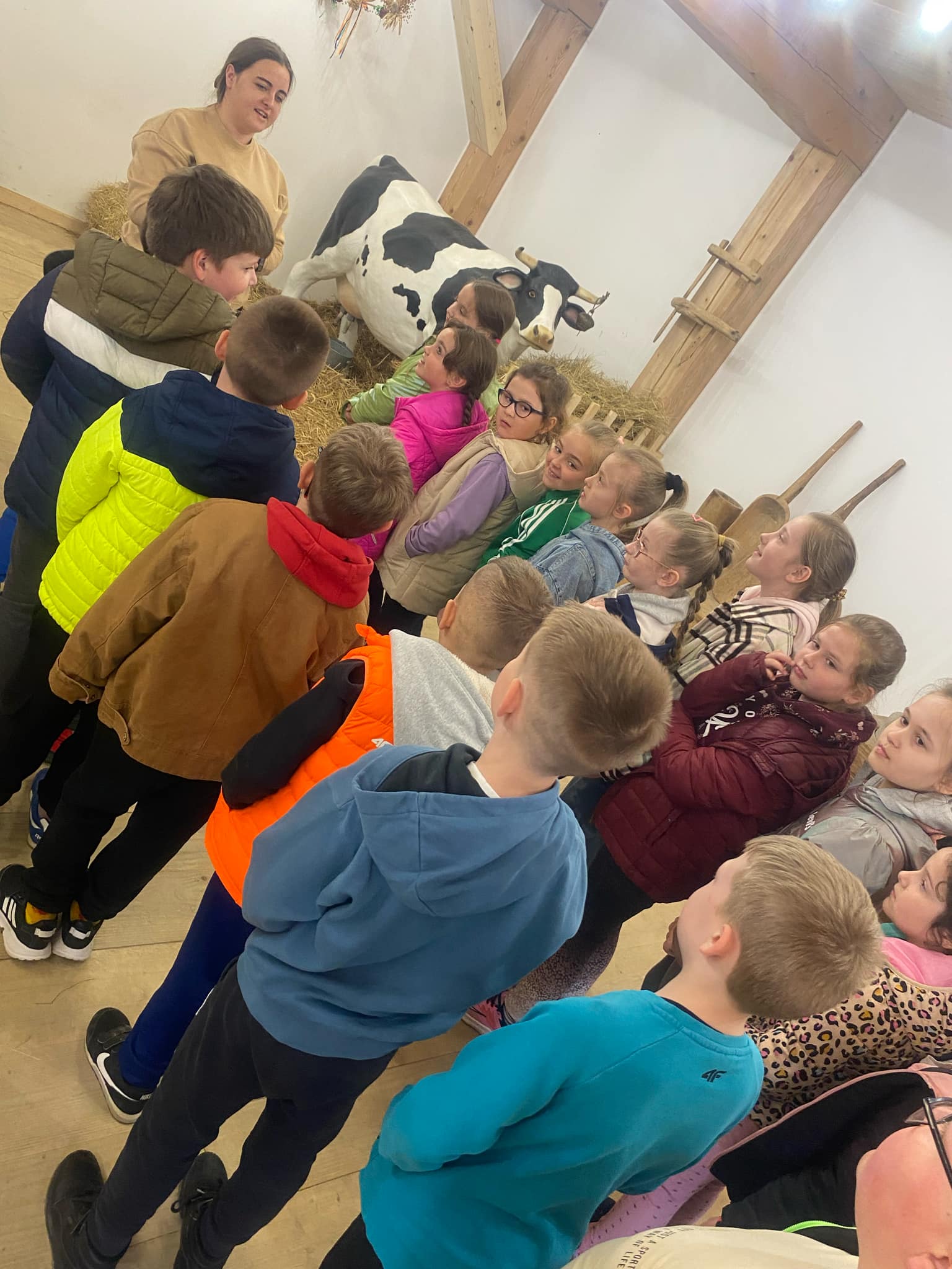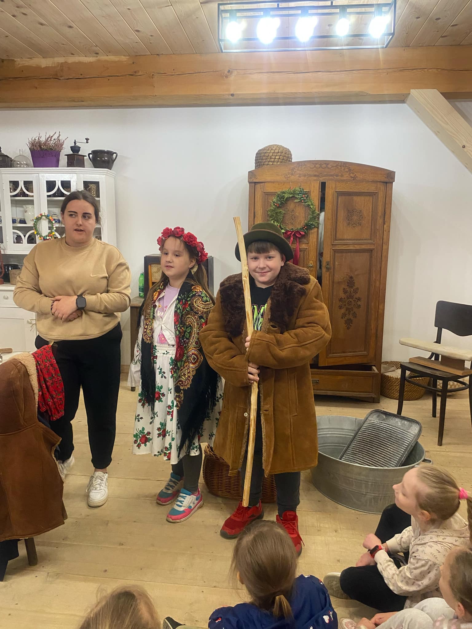 14 kwietnia dzieciaki z oddziału przedszkolnego oraz uczniowie klas I-III wybrali się do pobliskiej Laskowej, aby przeżyć radosną, wiosenną przygodę. Naszym celem był położony w malowniczej scenerii #SKANSENNAJĘDRZEJKÓWCE . Dzień rozpoczął się serdecznym przywitaniem z sympatycznymi animatorkami oraz pałaszowaniem słodkich racuszków. Po wspólnym śniadaniu był czas na zwiedzanie skansenu- zapoznanie się z architekturą dawnych wsi, warunkami życia oraz pracy ludzi na wsiach w dawnych czasach, oglądanie dawnych mebli, sprzętów domowych oraz sprzętów potrzebnych w każdym gospodarstwie. Każdy uczestnik wycieczki mógł się „przenieść w czasie„ wchodząc do starej chałupy ze stajenką i stodołą, zobaczyć młyn wodny, kuźnię i dawne narzędzia kowala, spichlerze, suszarnie do owoców czy pasiekę. Zważając na to, że w dawnych czasach rytm życia na wsi wyznaczały prace w polu i święta kościelne to z okazji zbliżającej się WIELKANOCY dzieciaki miały też okazję uczestniczyć w PLASTYCZNYCH WARSZTATACH WIELKANOCNYCH, gdzie wykonywały baranki z prawdziwej wełny oraz dowiedziały się jakie obrzędy i tradycje wielkanocne obowiązywały na dawnej wsi, jakie przetrwały do współczesności. Po zajęciach warsztatowych był czas na radosne podskoki na placu zabaw oraz karmienie zwierzaków na stałe mieszkających w ZAGRODZIE NA JĘDRZEJKÓWCE. Na zmęczonych harcami uczestników wyjazdu czekał również pyszny obiad, po którym musieliśmy wyruszyć w drogę powrotną do szkoły. Bardzo dziękujemy PANIOM ANIMATORKOM i obsłudze skansenu za bardzo miłe przyjęcie i super zabawę!!! Polecamy się na przyszłość