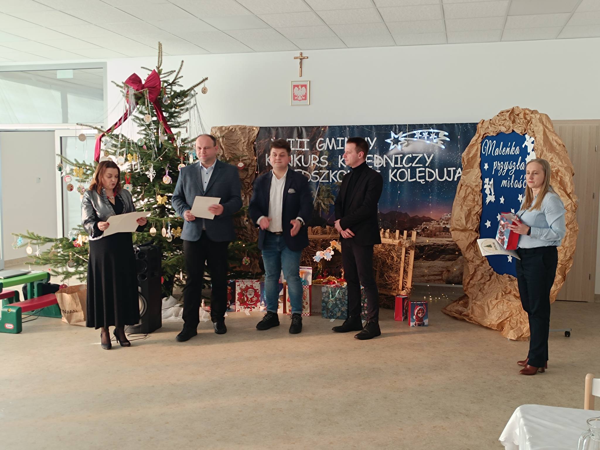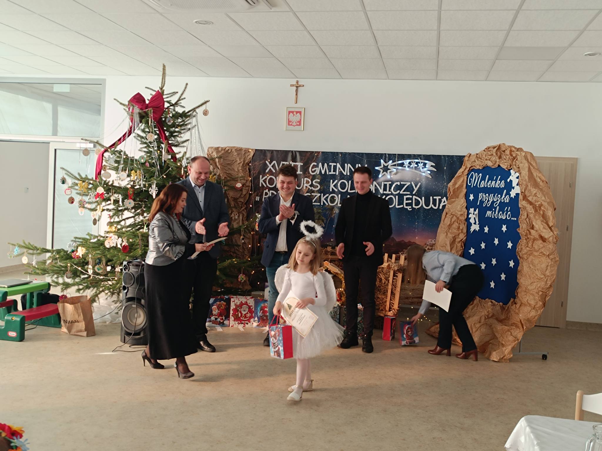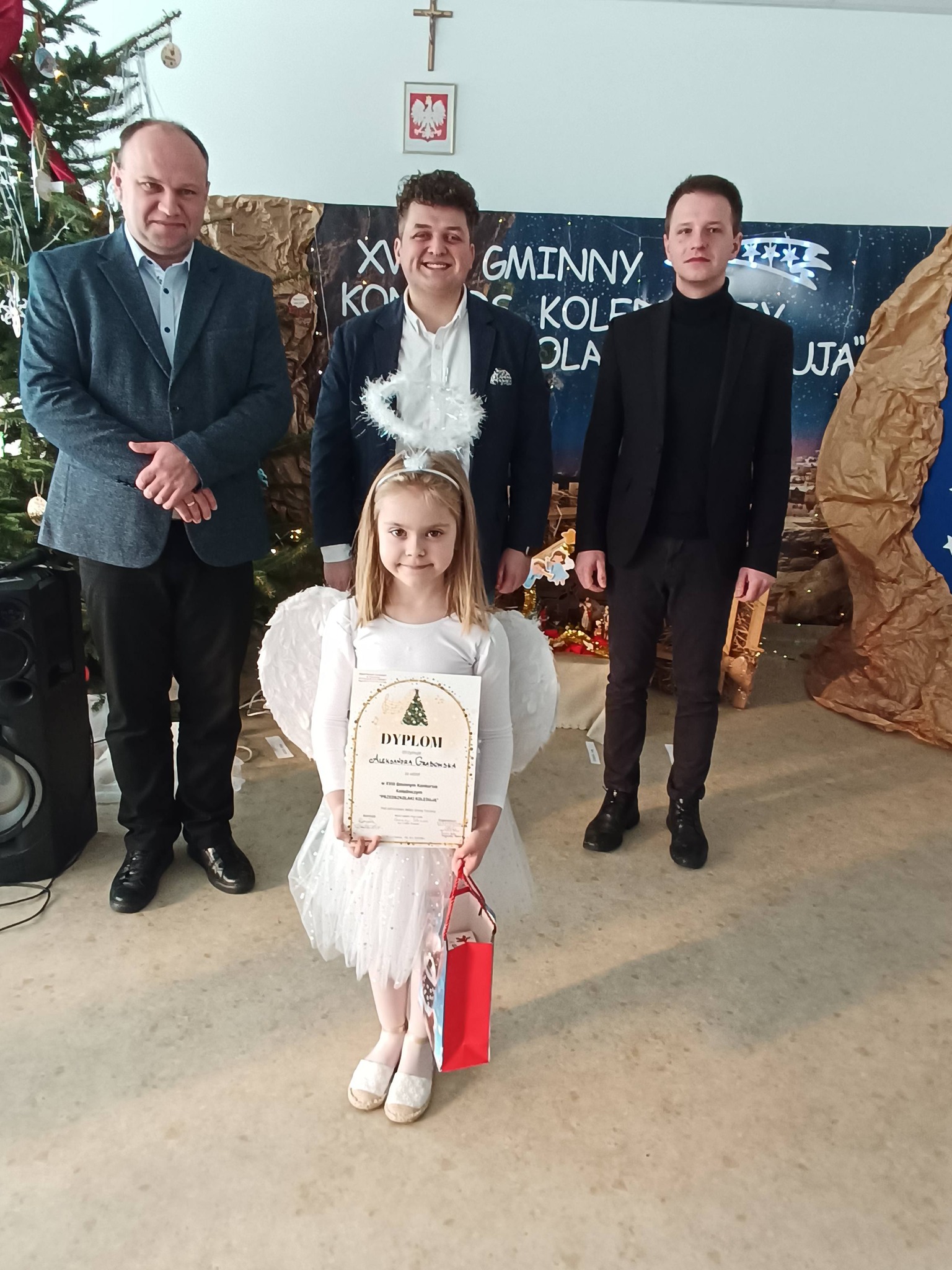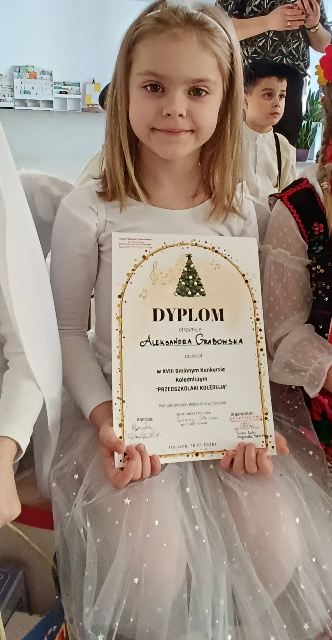 W dniu dzisiejszym reprezentantka oddziału przedszkolnego- Aleksandra Grabowska wzięła udział w XVIII Gminnym Konkursie Kolędniczym „PRZEDSZKOLAKI KOLĘDUJĄ” pod patronatem Wójta Gminy Trzciana, Pana Cezarego Stawarza. Ola podobnie jak reszta odważnych uczestników wspaniale poradziła sobie z niełatwym zadaniem- wystąpieniem przed profesjonalnym jury i zaśpiewaniem pastorałki przed szersza publicznością. Serdecznie dziękujemy dyrekcji oraz pracownikom Publicznego Przedszkola w Trzcianie za zaproszenie, miłą atmosferę i piękną gościnę. Oli gratulujemy odwagi, talentu i życzymy dalszych sukcesów.